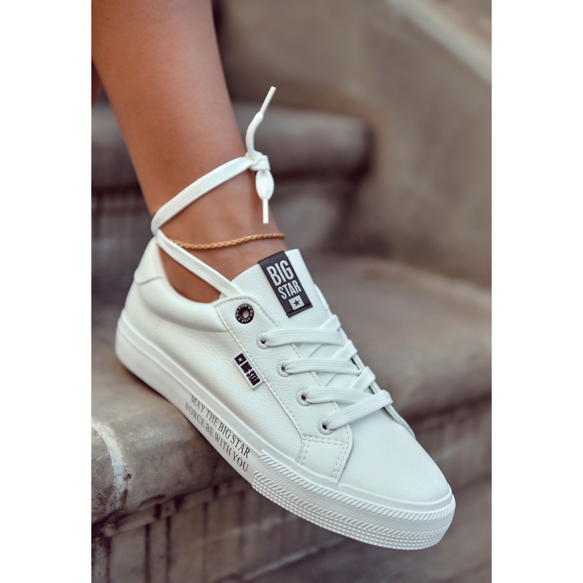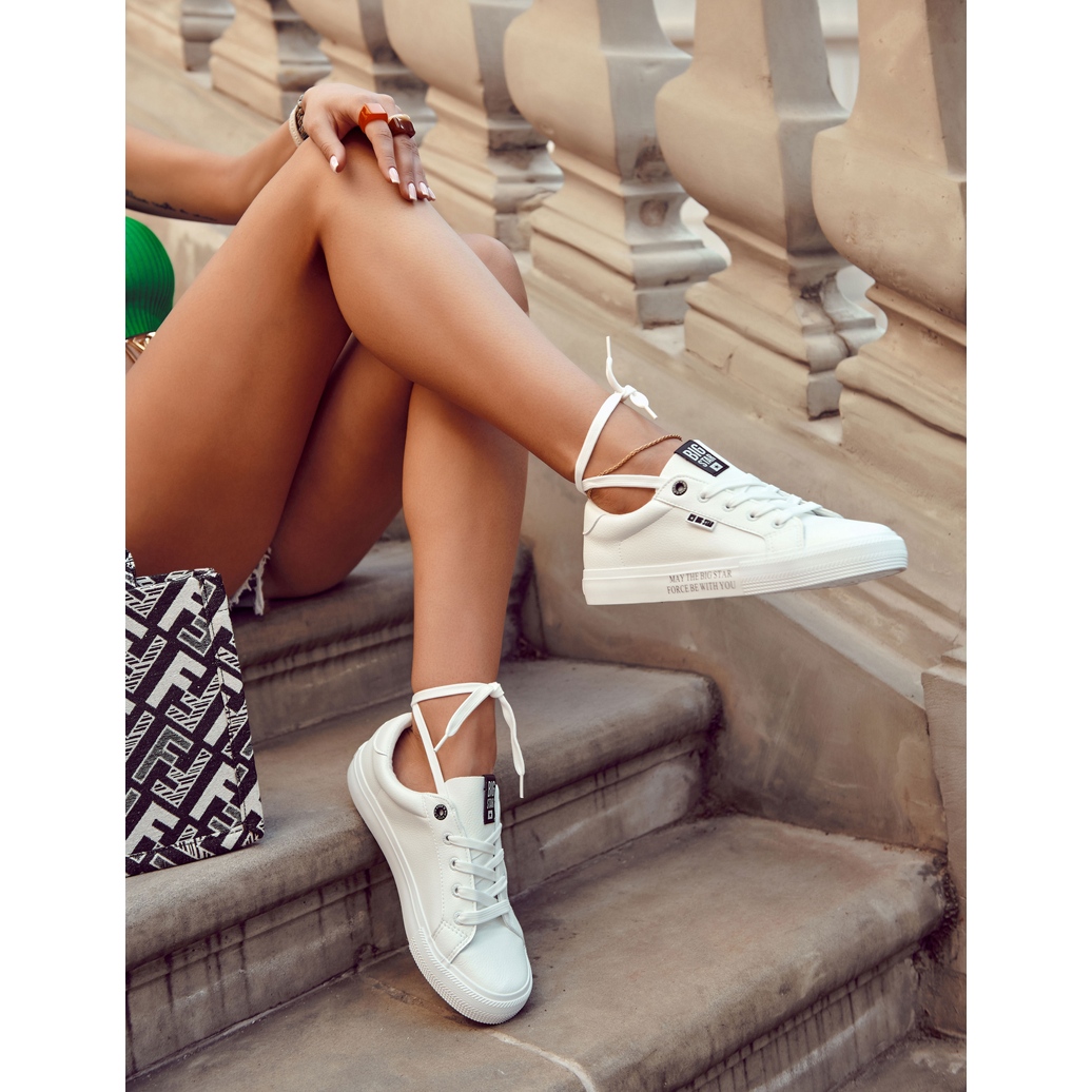 Detalii: Adidași din piele pentru femei cu inscripția Big Star EE274316 Alb