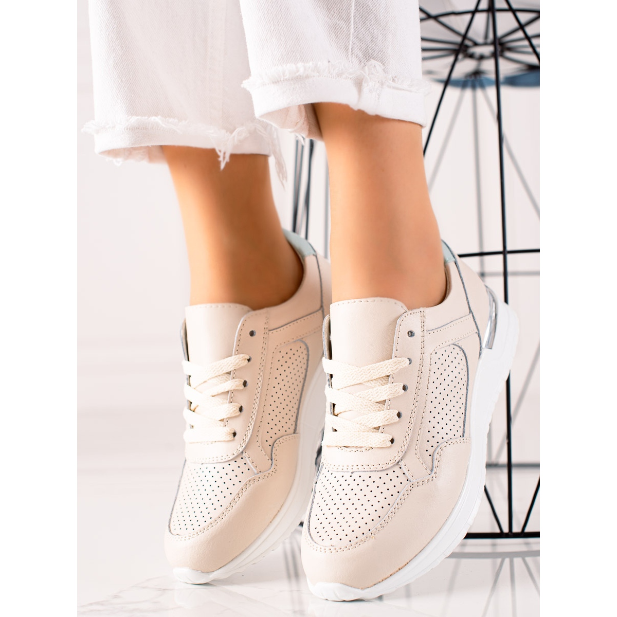 Adidașii din piele VINCEZA de culoare bej sunt alegerea perfectă pentru femeile care prețuiesc o combinație de confort și stil la modă. Realizați 100% din piele naturală, acești pantofi sport oferă nu numai durabilitate, ci și un aspect elegant, perfect pentru coafarea de zi cu zi.