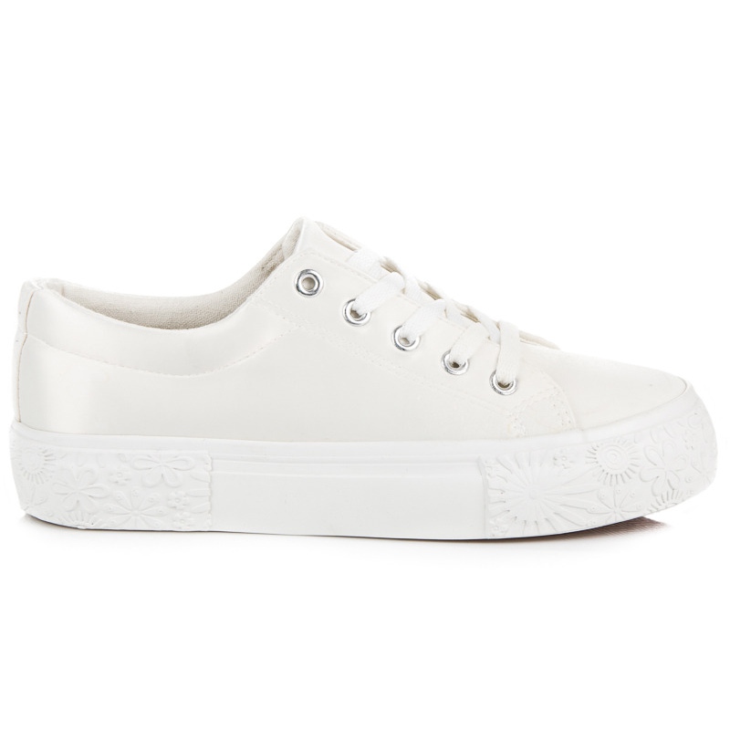 Descoperiți eleganța de zi cu zi cu pantofii sport Kylie Satin Platform în alb. Acești pantofi frumoși sunt combinația perfectă de confort și stil care va veni în întâmpinarea chiar și a celor mai pretențioși clienți. Fabricate din țesătură satinată de înaltă calitate, oferă o purtare extrem de moale și confortabilă, ceea ce le face o alegere excelentă pentru plimbări lungi și relaxante cu cei dragi.