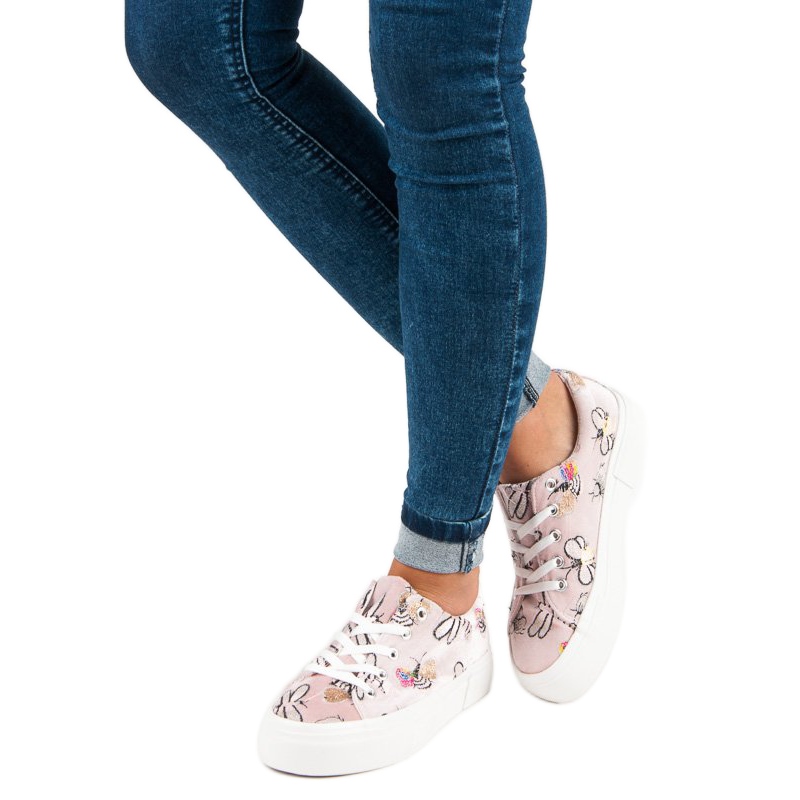 Va prezentam incantatori pantofi sport cu platforma roz si alb de la marca Kylie. Acești pantofi unici prezintă un model fabulos de insecte colorate, ceea ce îi face o modalitate perfectă de a însufleți orice stil. Indiferent de vârstă, fiecare femeie va aprecia designul original și confortul de utilizare.