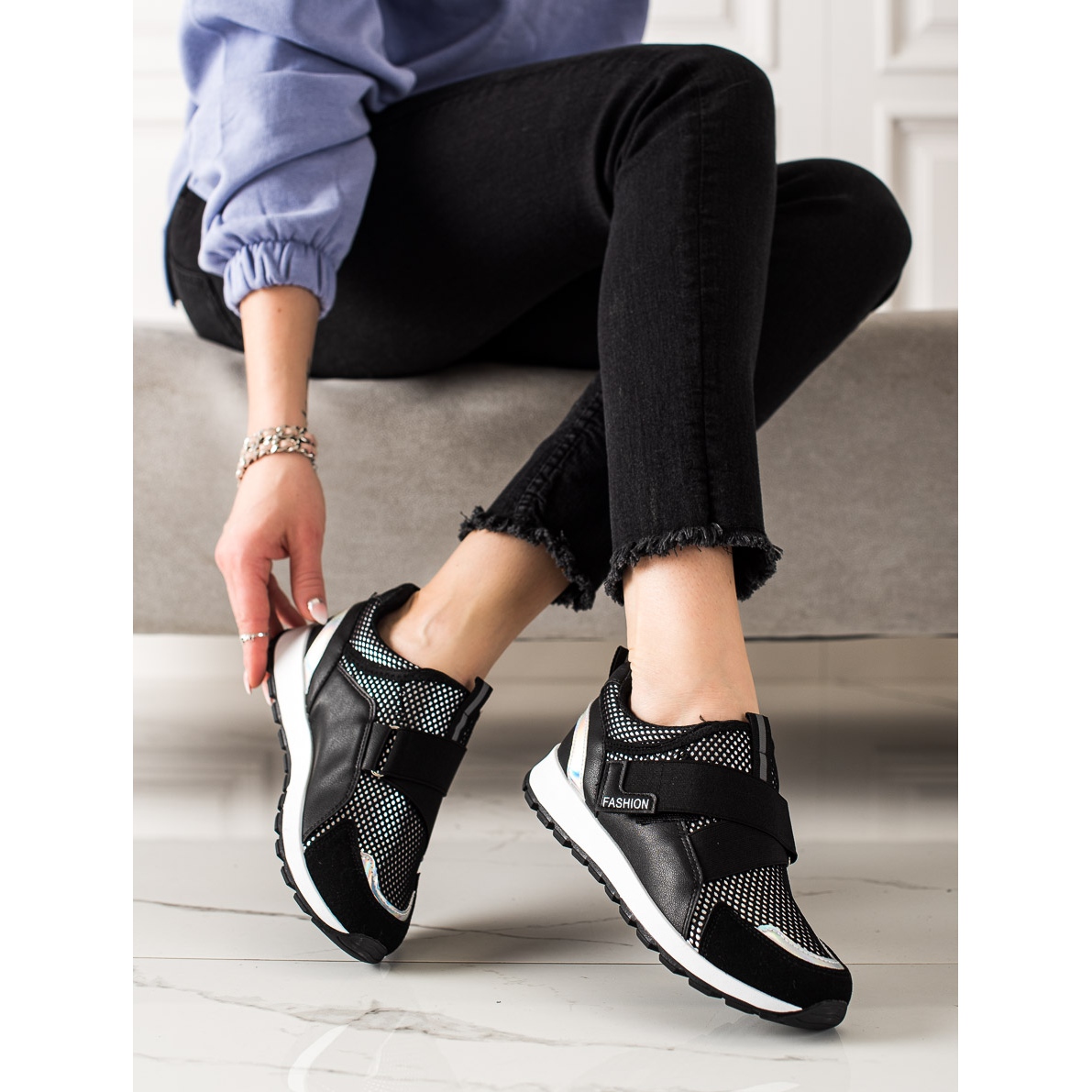 Descoperiți adidași stilați cu velcro de la TRENDI - combinația perfectă de confort și modă! Acești pantofi sport negri sunt o alegere perfectă pentru femeile active care apreciază atât confortul, cât și aspectul la modă.
