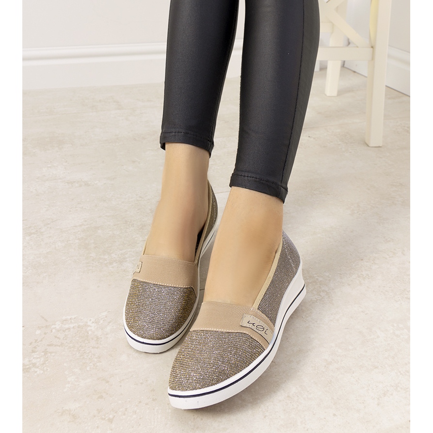 Partea superioară din material, decorată cu fir auriu strălucitor, atrage privirea și conferă întregului lucru o strălucire unică. Materialul flexibil al insertului permite o potrivire perfectă pe picior, ceea ce mărește confortul la purtare. Modelul Burris este disponibil în numere non-standard (de la 36 la 41), ceea ce asigură că fiecare femeie își va găsi dimensiunea potrivită.