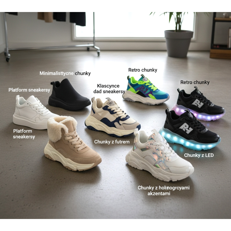 Aranjarea cu pantofi sport groși – inspirații