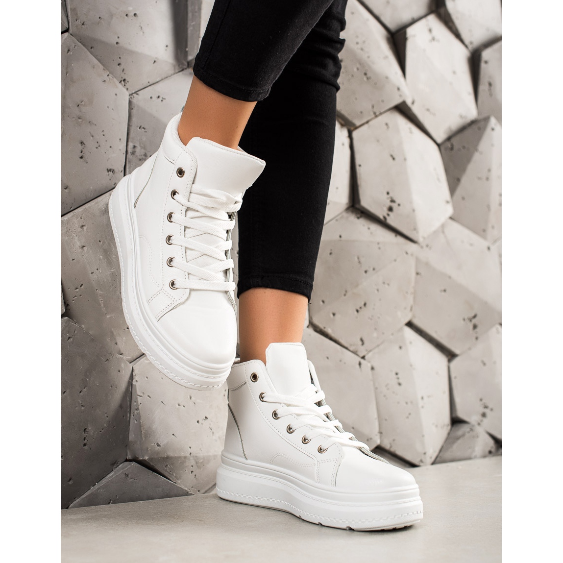 Detalii: Renda Adidași Înalți Cu Piele Ecologică alb