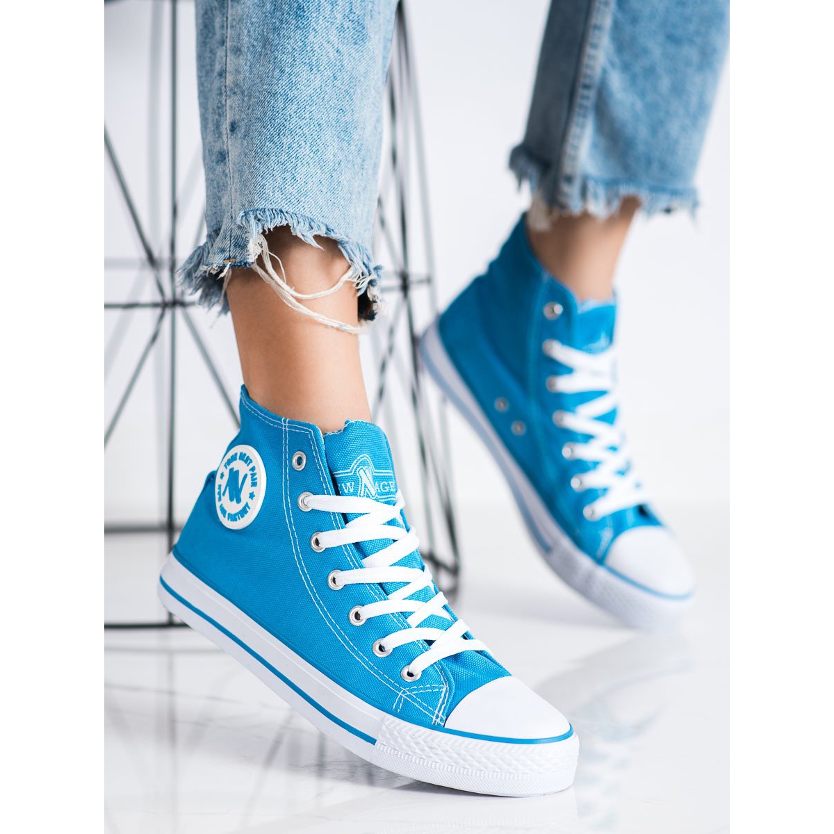 Vă prezentăm pantofii înalți cu șireturi New Age într-o frumoasă culoare albastră - alegerea perfectă pentru persoanele care apreciază confortul și stilul! Acești adidași înalți de la producătorul New Age încântă prin simplitatea și universalitatea lor, ceea ce îi face perfecți atât pentru purtarea de zi cu zi, cât și pentru stilul sport.