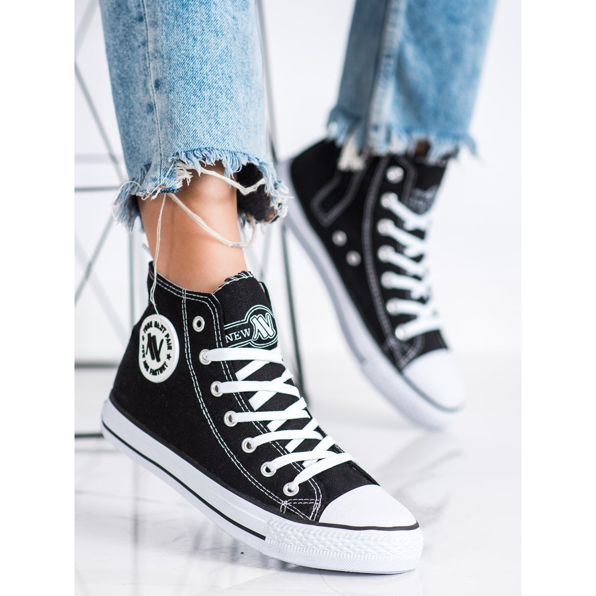 Descoperiți confort și stil extraordinar cu pantofii înalți cu șireturi New Age într-o culoare clasică neagră. Aceste locuri sunt alegerea perfectă pentru fiecare femeie modernă care apreciază aspectul la modă și confortul de zi cu zi.