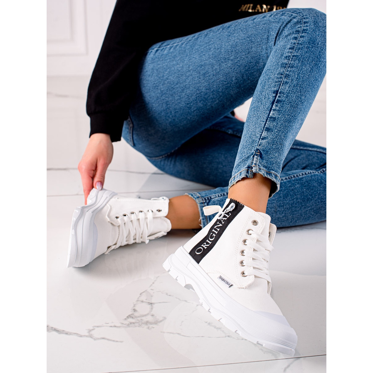 Descoperiți confortul și stilul cu pantofii originali înalți de la Sabatina. Acești adidași albi unici sunt combinația perfectă de funcționalitate și design la modă, care se vor combina bine cu orice stil de zi cu zi.