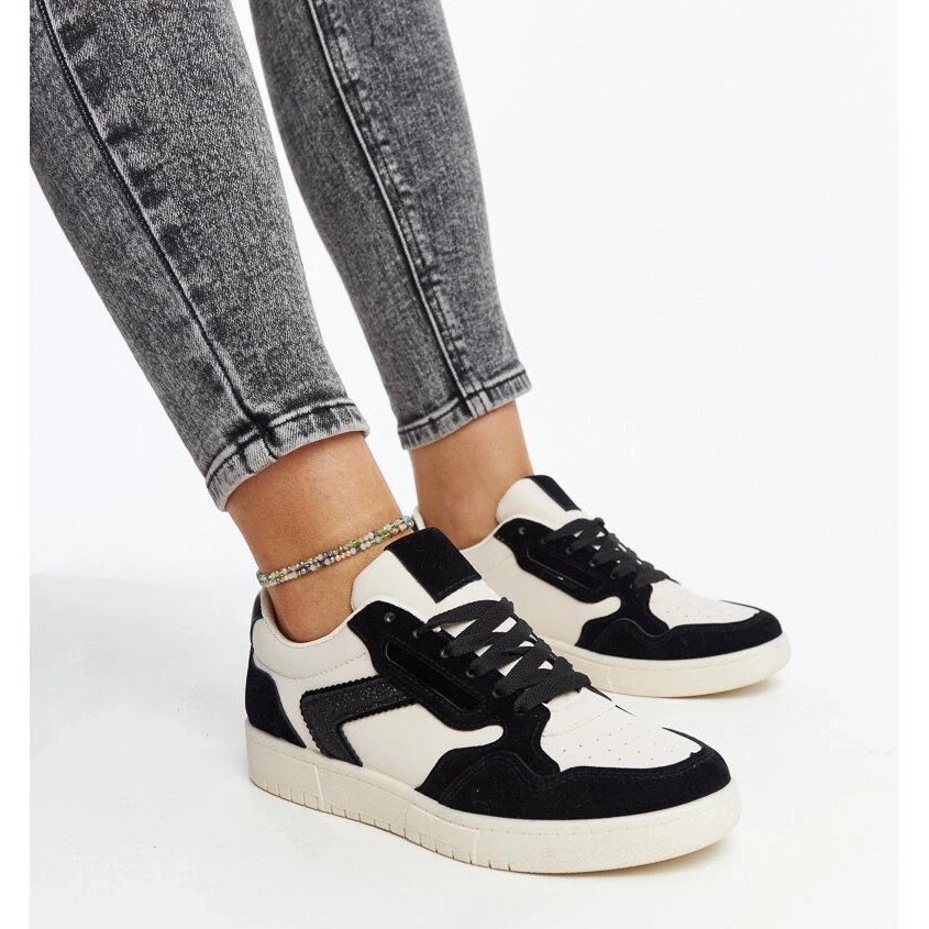 Descoperiți adidași albi și negri cu Juwan Glitter de la D/GMR, ceea ce va atrage cu siguranță atenția fiecărui iubit de modă! Acești pantofi eleganți sunt combinația perfectă de confort și design modern, create pentru generația tânără, care apreciază aspectul la modă și confortul purtat.