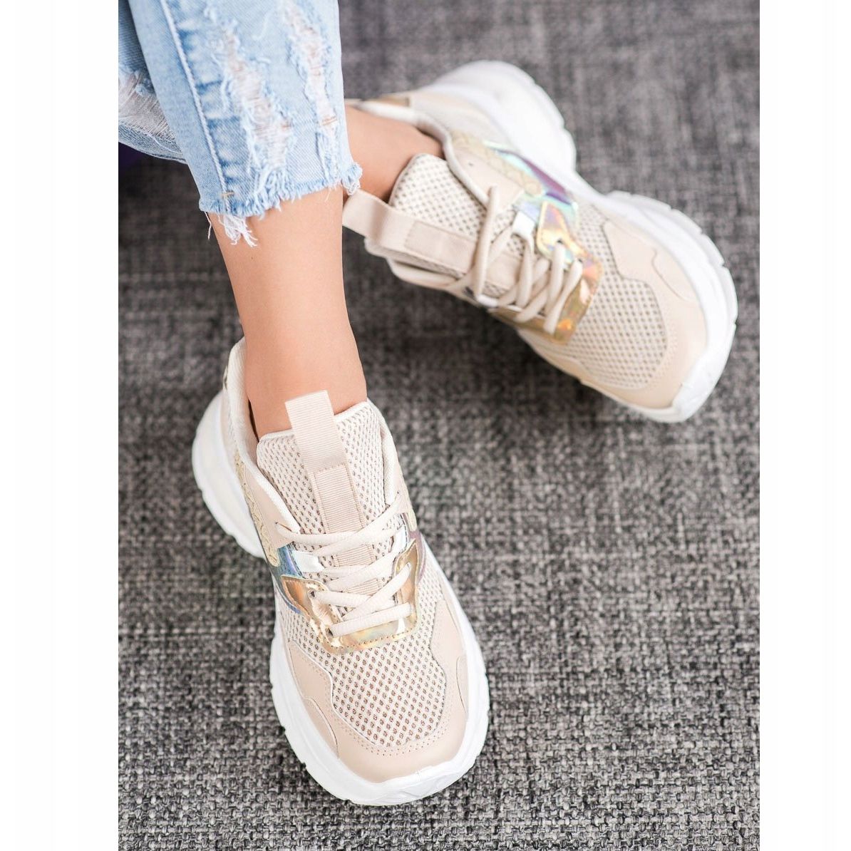 Culoarea maro cu inserții strălucitoare, colorate, în diverse forme, face ca acești pantofi să nu fie doar funcționali, ci și să se distingă printr-un stil de modă la modă. Talpa de cauciuc cu benzi de rulare oferă o aderență excelentă, iar înălțimea platformei de 5,5 cm adaugă un pic de caracter fără a limita confortul.
