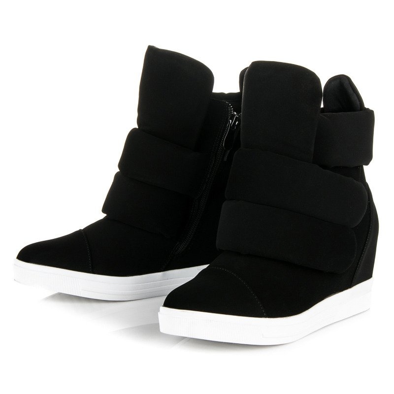 Adidașii se remarcă printr-un toc încorporat, rigidizat și o pană ascunsă impresionantă, de 9 cm înălțime, care prelungește optic picioarele și dă caracter stilului. Căptușeala înaltă (8-9 cm) și vârful rotund asigură confortul la purtare, iar talpa solidă din cauciuc cu benzi de rulare garantează stabilitate în toate condițiile.
