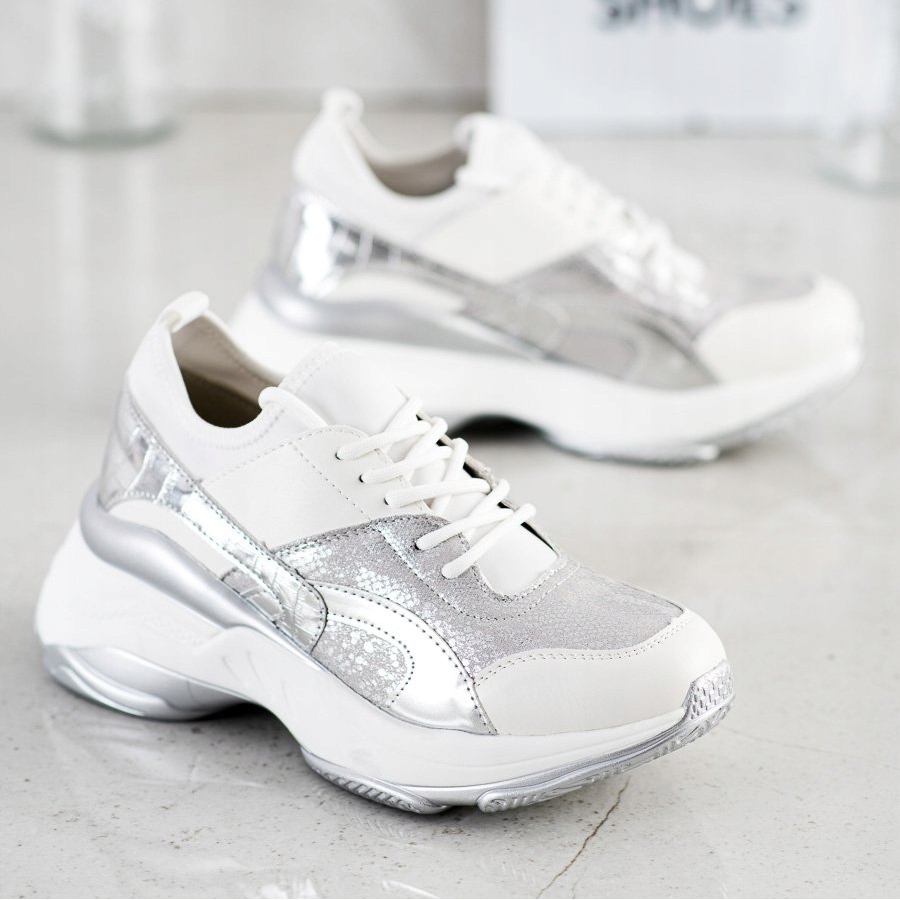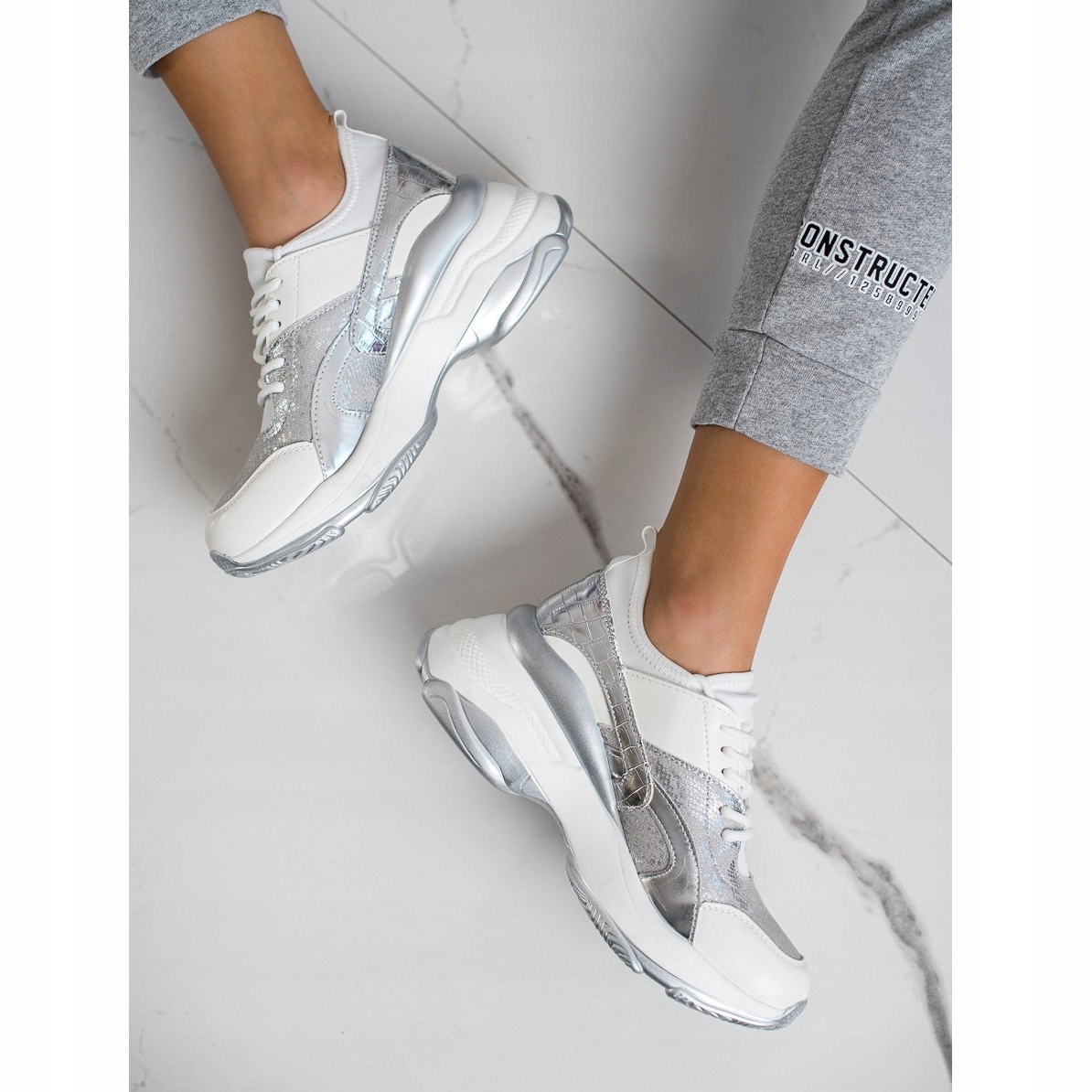 Detalii: Bestelle Adidași la modă pe platformă alb argint gri