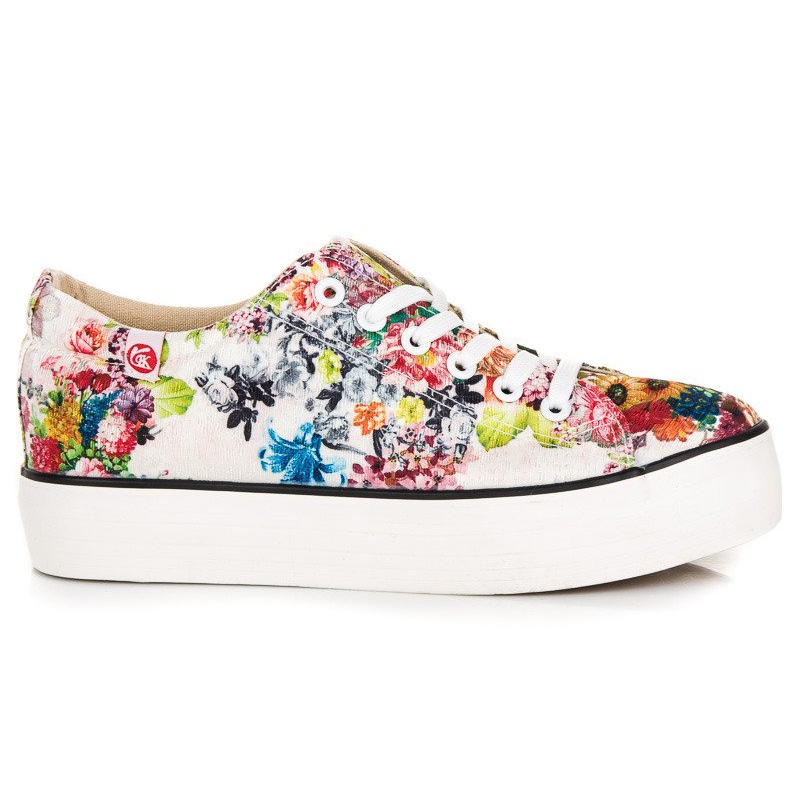 Caracterul de designer este subliniat de un motiv floral pe partea superioară a materialului, care adaugă prospețime oricărui stil. Varful rotund si tocul moale incorporat garanteaza confortul la purtare, iar talpa de cauciuc, calcata, asigura stabilitate la fiecare pas. Adidașii au o platformă joasă de 3 cm, ceea ce îi face confortabili și perfecti pentru utilizarea de zi cu zi.