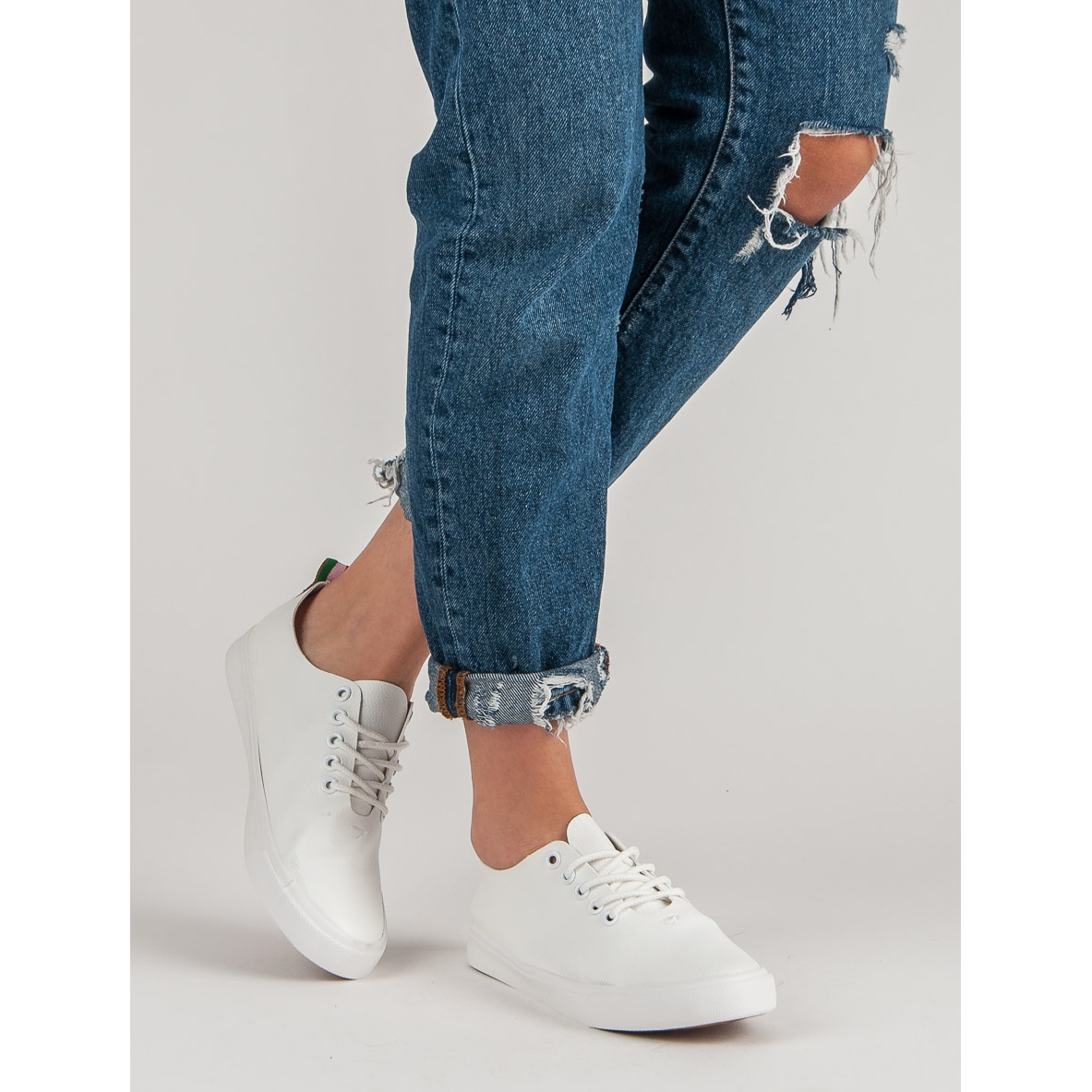 Adidașii albi cu șireturi sunt alegerea perfectă pentru fiecare femeie la modă care apreciază confortul și stilul. Acești pantofi ușori și aeriși se potrivesc perfect atmosferei tinerești, iar designul lor simplu îi face să se potrivească perfect cu diverse stiluri, în special cu blugi.