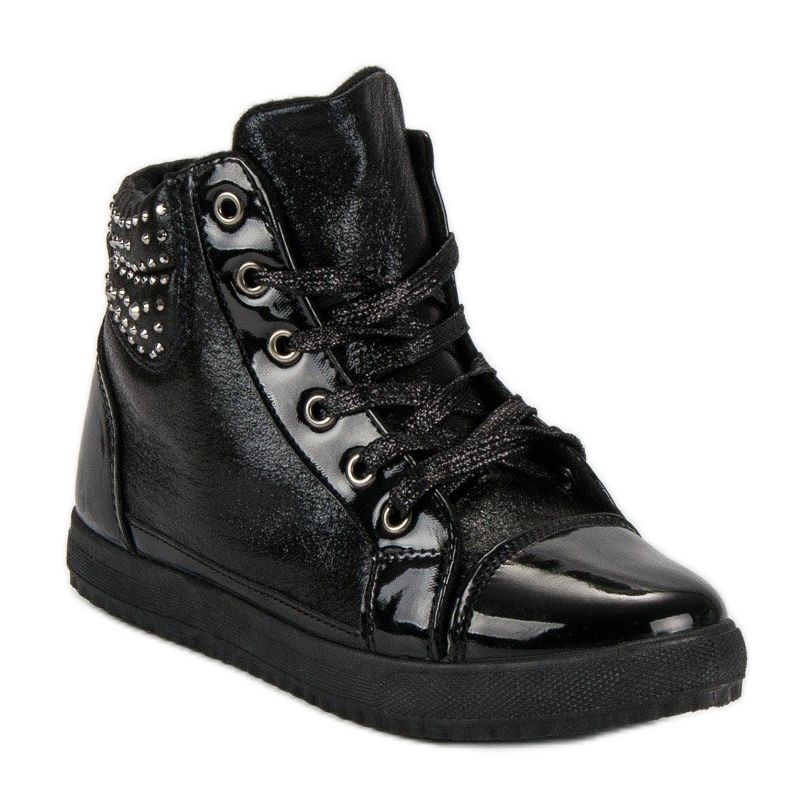 Descoperiți o nouă dimensiune a confortului și stilului cu pantofii noștri negri cu șireturi, care sunt absolut obligatorii în garderoba oricărei femei. Realizați din piele ecologică de înaltă calitate și material textil, acești pantofi combină casualitatea sportivă cu farmecul rock. Designul lor unic, îmbogățit cu cristale strălucitoare și știfturi atrăgătoare, le face o alegere ideală atât pentru utilizarea de zi cu zi, cât și pentru ieșirile de seară.