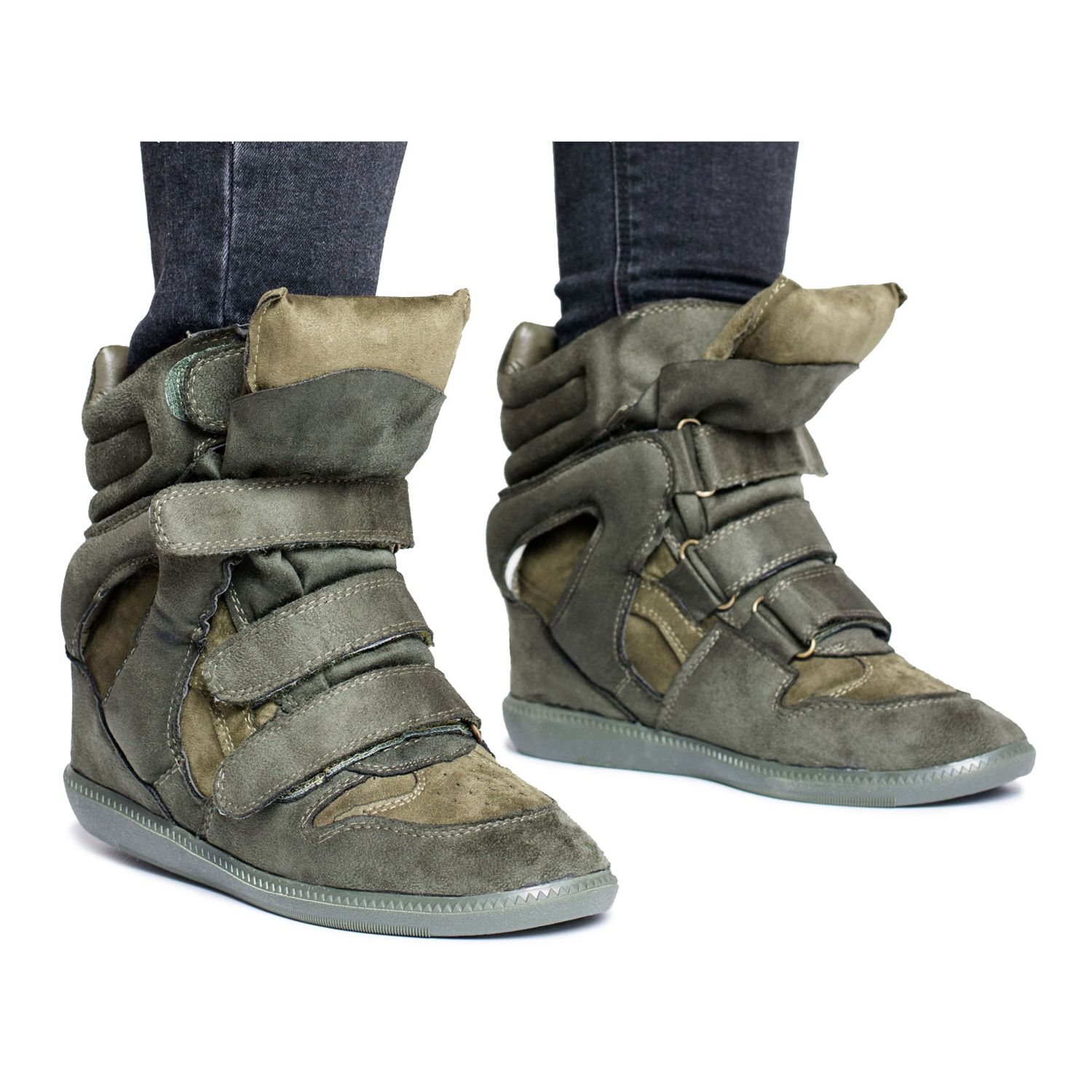 LU BOO Adidași Lu Boo pentru femei, cu velcro din piele de căprioară, măslin Alexis verde