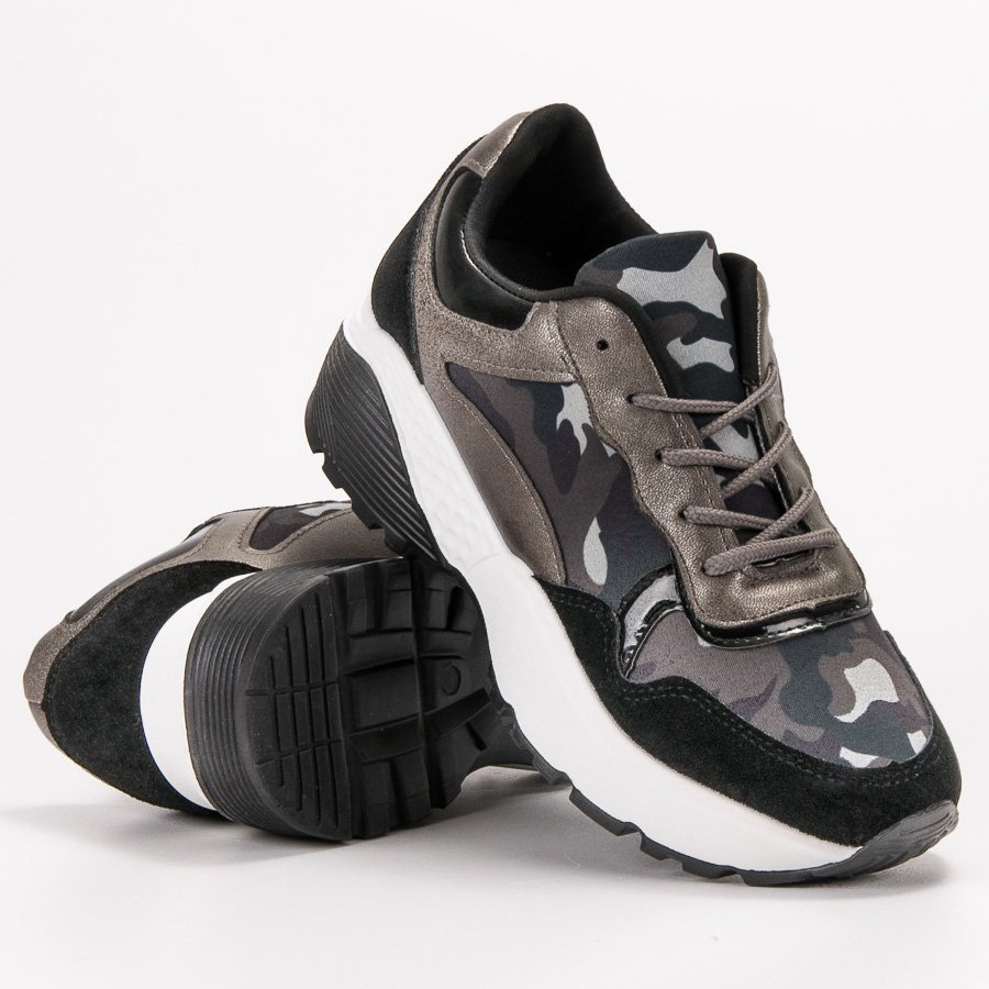 Adidașii SHELOVET Black Moro sunt o alegere perfectă pentru toate femeile care doresc să introducă un pic de stil modern în garderoba lor. Acești adidași unici cu un motiv de camuflaj nu numai că atrag atenția, ci se potrivesc perfect în diverse stiluri. Le poți combina cu ușurință cu ținuta ta de zi cu zi, dându-i un caracter sportiv.