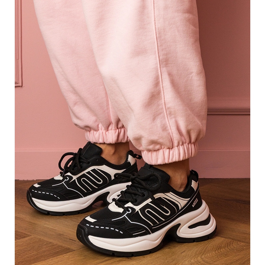 Culoarea neagră uniformă face ca aceste adidași să fie extrem de versatili - se îmbină bine cu diverse stilizări, de la sport la casual. Platforma înaltă de 6 cm garantează sprijin și stabilitate suplimentară și, în același timp, adaugă o eleganță subtilă la fiecare pas. Nasul rotund oferă confort, iar fermoarul introdus vă permite să puneți rapid și să decolați pantofi, ceea ce va fi apreciat de fiecare femeie ocupată.