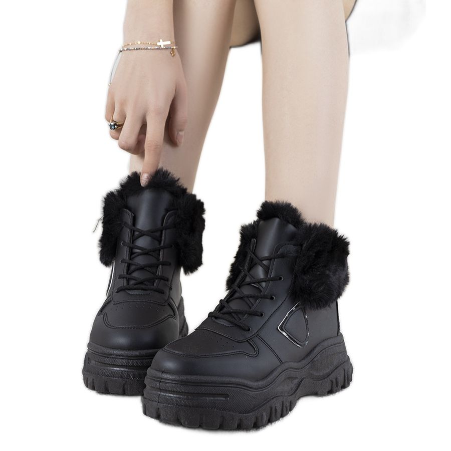 Degetul rotund și închiderea cu șireturi asigură confort de utilizare și o potrivire perfectă pe picior. Cauciucul folosit în talpă garantează durabilitate și aderență, iar branțul din material textil face ca încălțămintea să fie plăcută de purtat toată ziua. Datorită designului lor la modă, fără modele, adidașii negri cu blană ai lui Doreen pot fi combinați cu ușurință cu diverse stiluri.