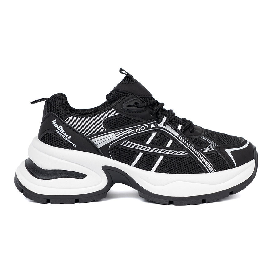 Shelvt Shelvt Adidași negri cu un superior respirabil și o talpă masivă albă negru