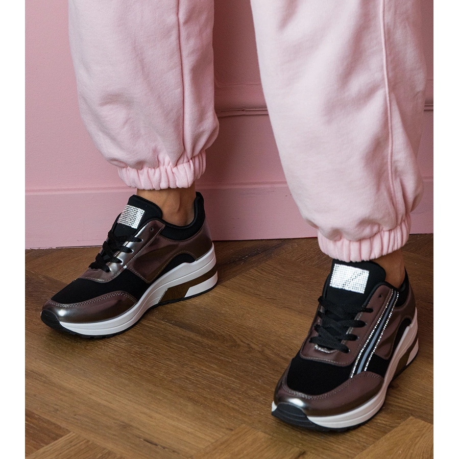 Aceste încălțăminte sport pentru femei sportive se disting printr -o tăietură scăzută și un nas rotund, ceea ce asigură confortul de a purta ore lungi. Adidașii sunt încorporați pe o platformă înaltă de 5 cm, oferind întregii figuri un aspect ușor sportiv, dar și un aspect feminin. Fabricate din material exterior sintetic, acestea sunt nu numai durabile, ci și ușor de îngrijit, ceea ce înseamnă că te vor însoți în multe stilizări de zi cu zi.