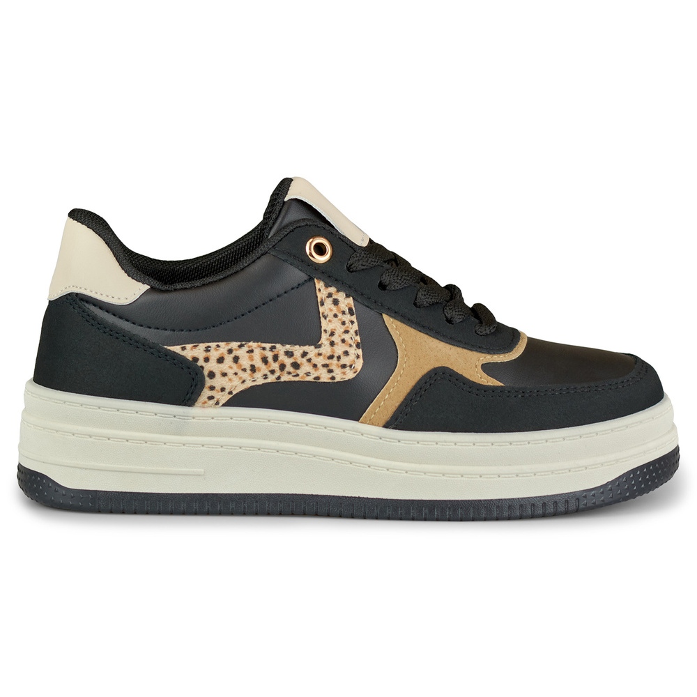 Adidașii negri Lara se remarcă prin vârful rotund și înălțimea redusă, ceea ce asigură confortul purtării pe tot parcursul zilei. Platforma de 4 cm înălțime adaugă ceva înălțime, asigurând în același timp stabilitate și confort. Închiderea cu șireturi permite o potrivire perfectă pe picior, iar talpa sintetică asigură o bună aderență și durabilitate.