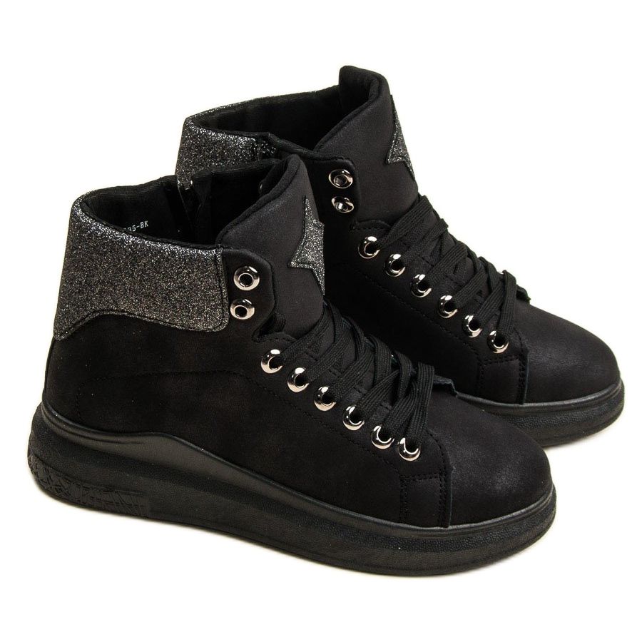 Descoperă adidașii Mckeylor unici care combină designul modern și confortul. Acești adidași înalți din piele intoartă neagră sunt alegerea perfectă pentru femeile care prețuiesc un stil sportiv în fiecare zi. Talpa neobișnuită, asimetrică, conferă pantofilor un aspect atractiv, iar inserțiile cu sclipici adaugă un accent atrăgător.