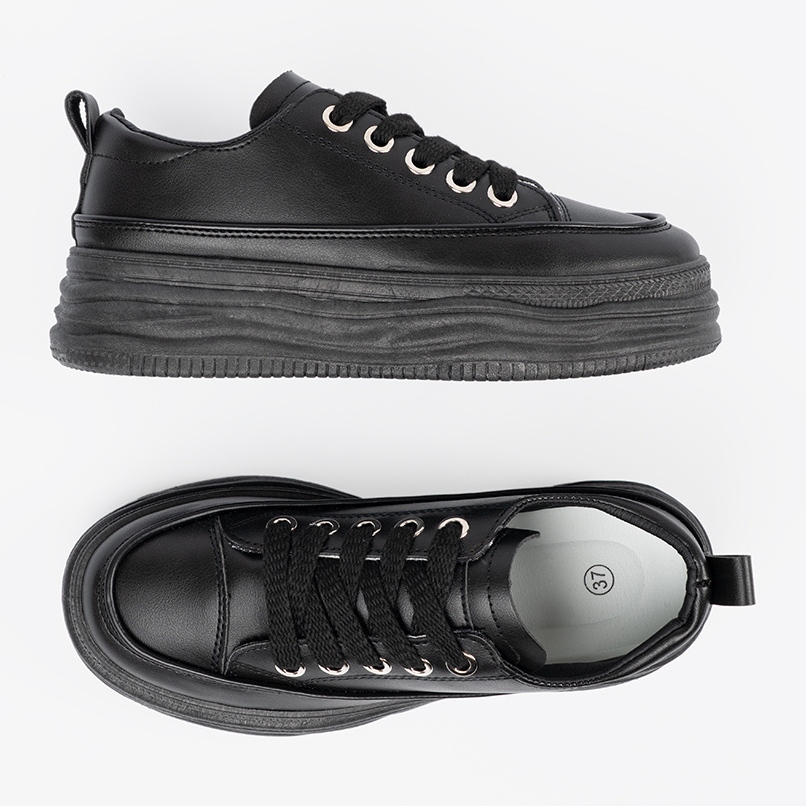 Vă prezentăm adidași negri pe platformă, care combină perfect eleganța cu confortul zilnic. Aceste adidași eleganți sunt un must-have în garderoba fiecărei femei care vrea să se simtă la modă și confortabilă în același timp.