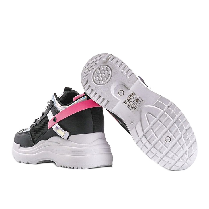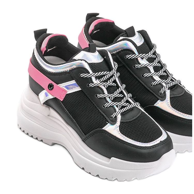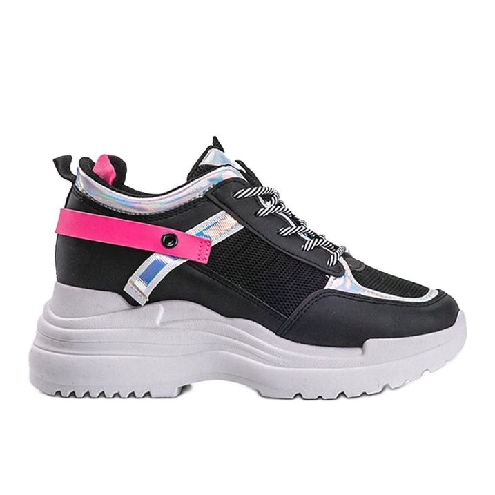 Adidașii negri Johana cu talpă groasă sunt alegerea perfectă pentru femeile care caută încălțăminte sport elegantă și confortabilă. Acești adidași se remarcă printr-un design modern care va pune în evidență perfect orice silueta datorită unei panei ascunse de 9 cm înălțime. Decorațiile sub formă de inserții roz pe partea superioară le adaugă caracter, făcându-le extrem de atractive vizual.