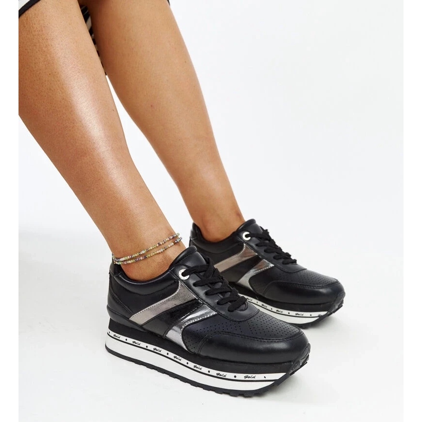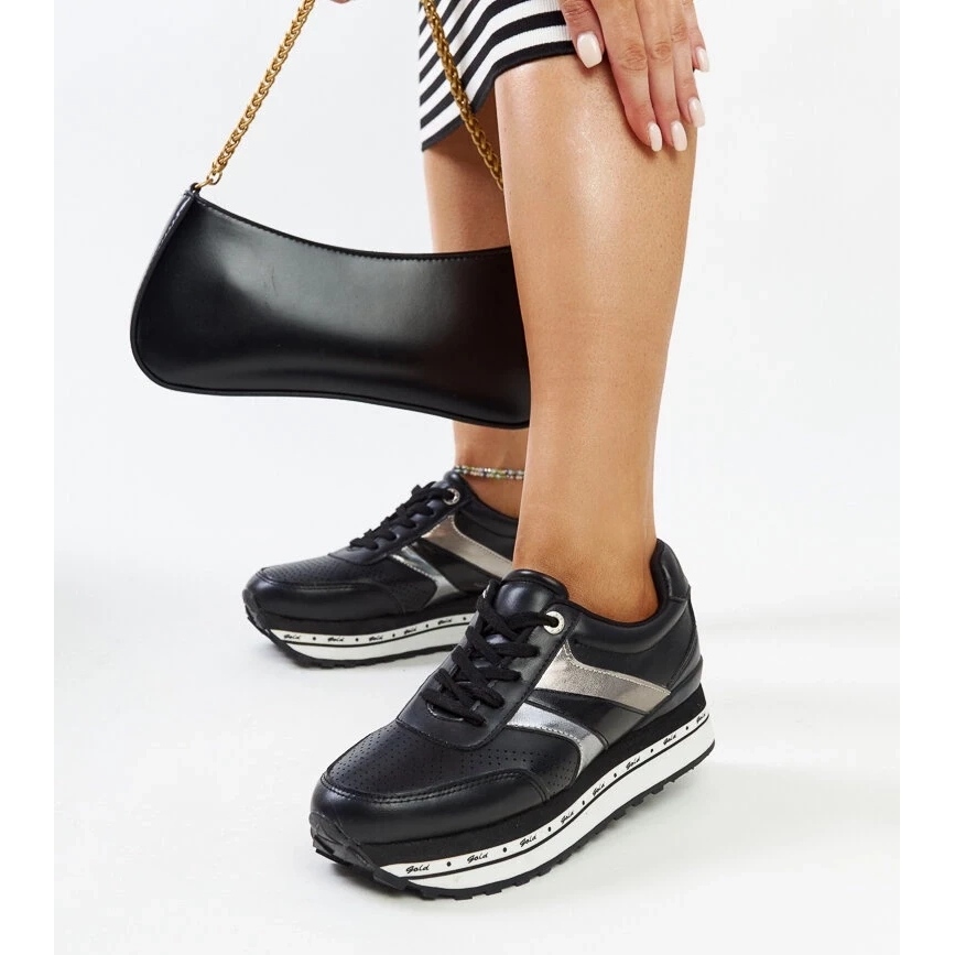 Detalii: Adidași negri pe talpa înaltă a Mehari negru