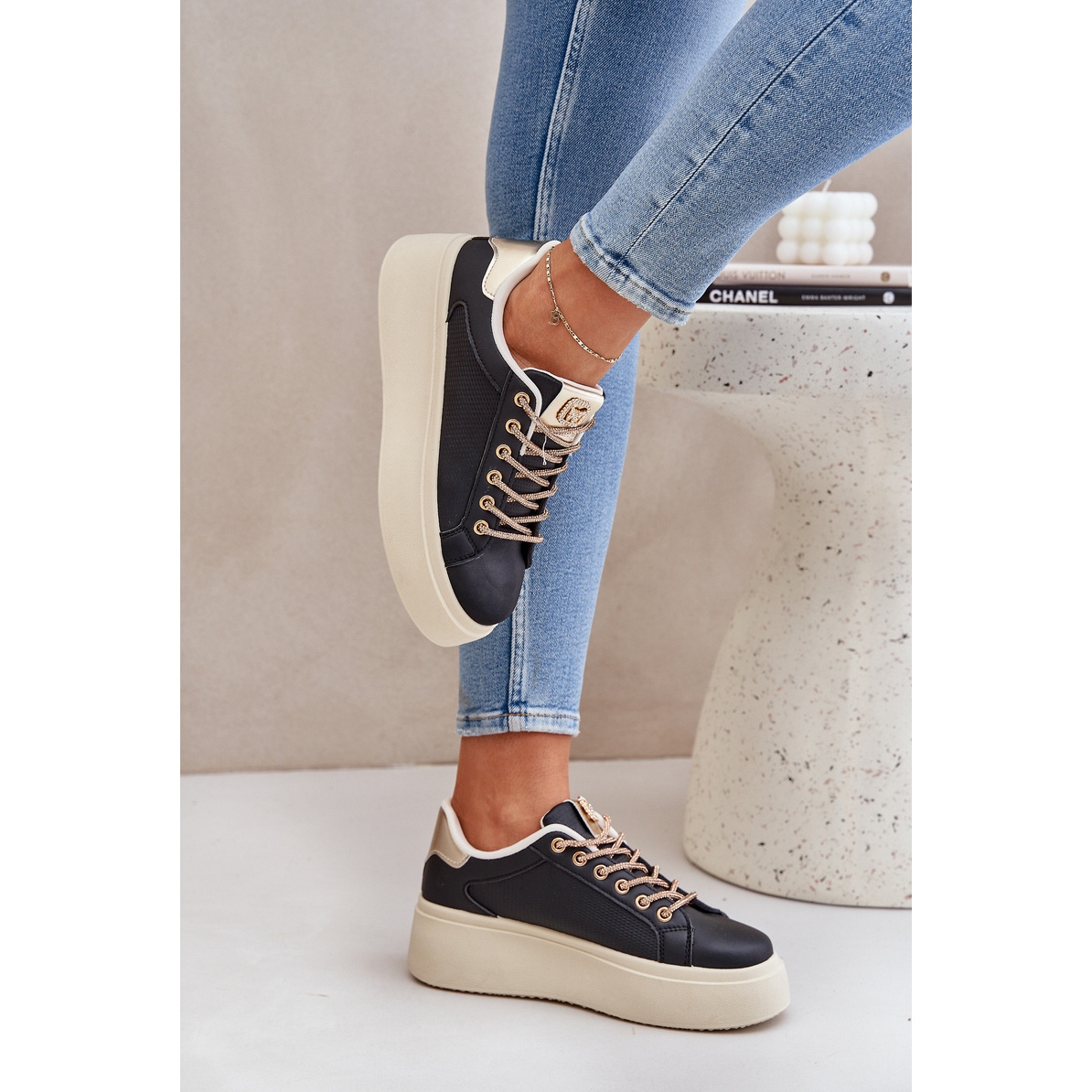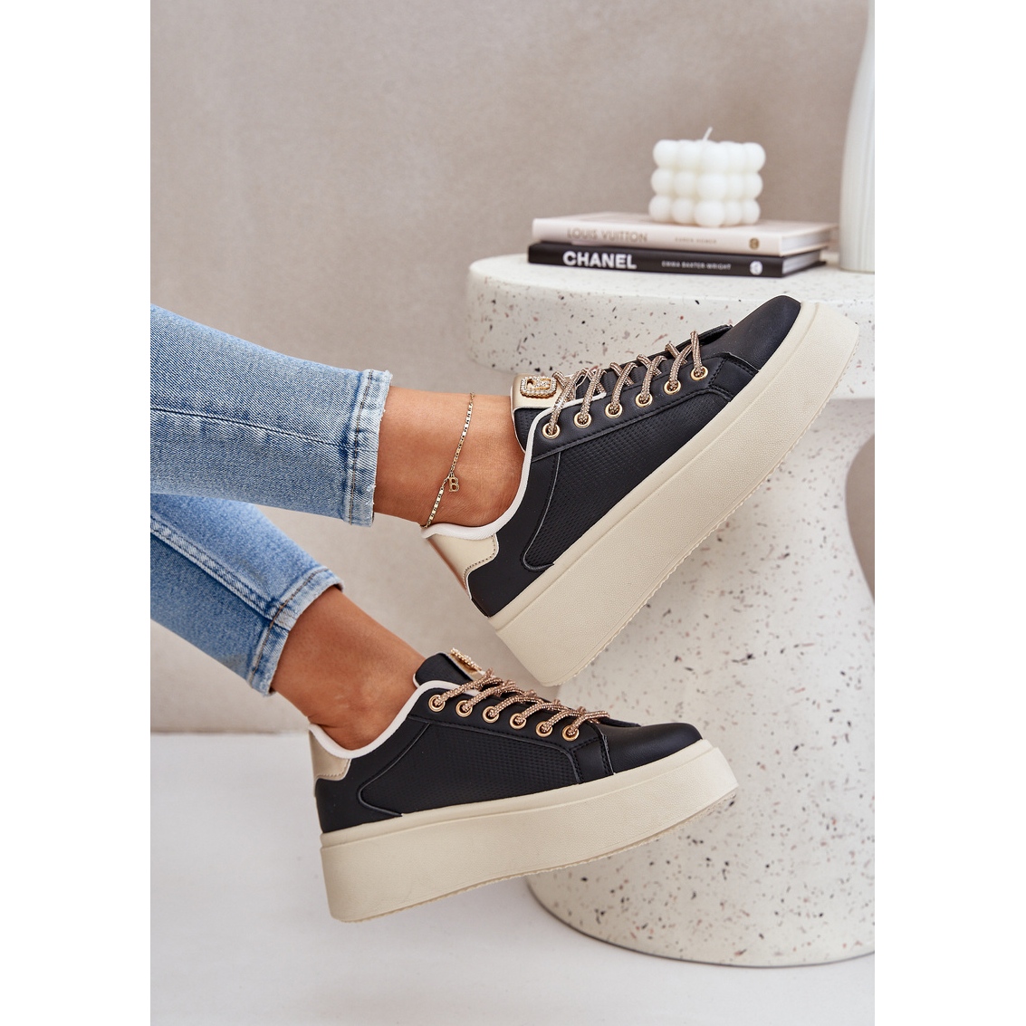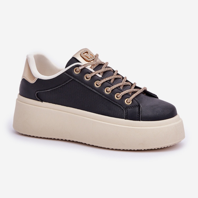 Detalii: Adidași pe o platformă cu șireturi decorative negre negru
