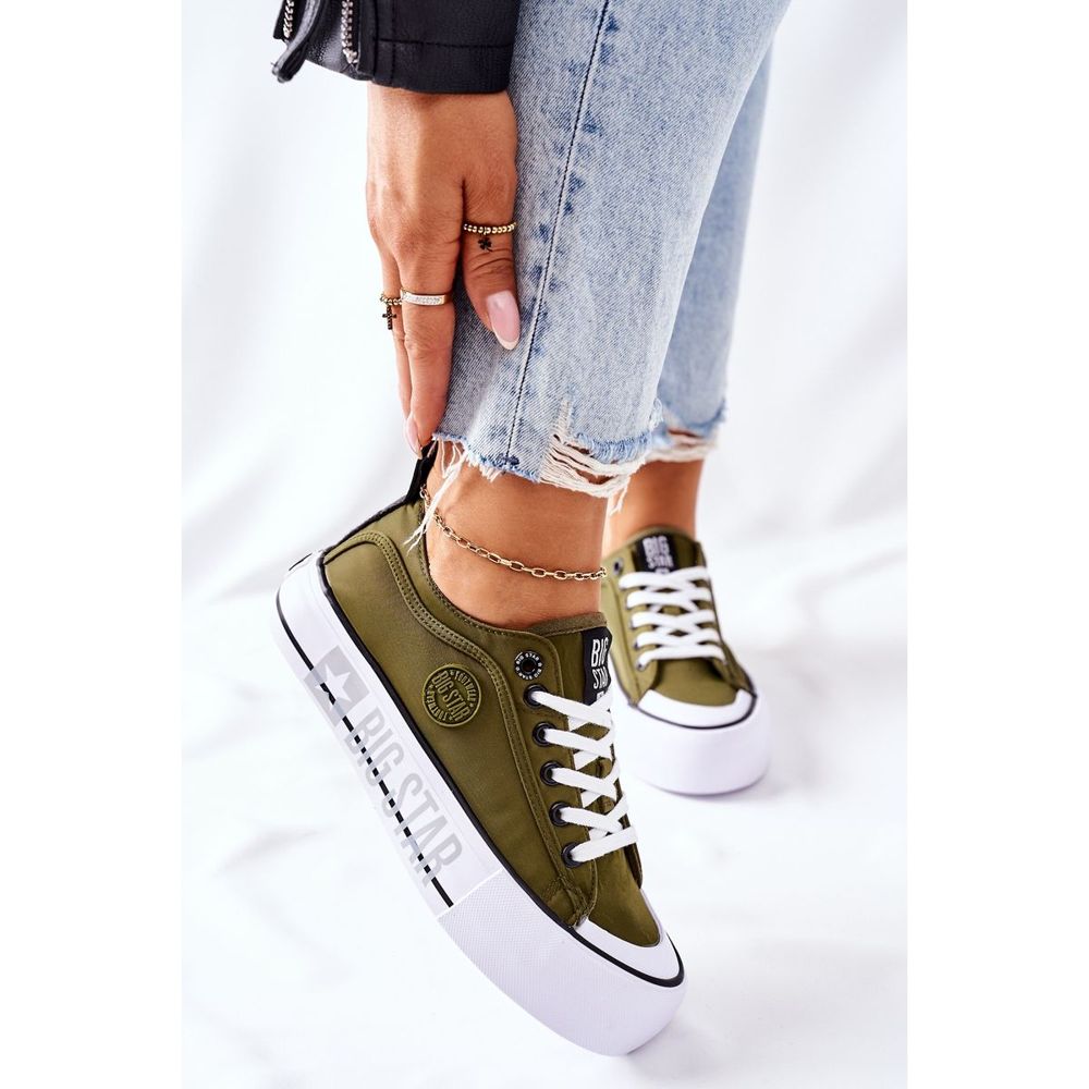 Descoperiți stilul și confortul unic cu pantofii sport de damă cu platformă Big Star II274024 în verde kaki! Acești adidași iconici ai brandului polonez BIG STAR sunt alegerea perfectă pentru femeile care doresc să îmbine moda cu confortul.
