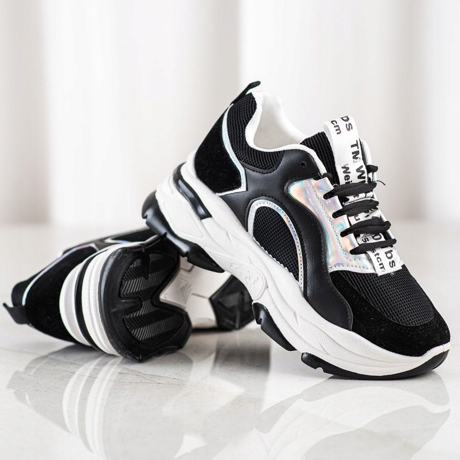 Adidașii cu platformă FASHION într-o culoare neagră elegantă cu accente argintii sunt alegerea perfectă pentru femeile care doresc să îmbine confortul cu stilul la modă. Acești pantofi sport, proiectați pentru utilizarea de zi cu zi, oferă confort la fiecare pas, datorită tocurilor încorporate, moi și a tălpii din cauciuc, care garantează o aderență excelentă.