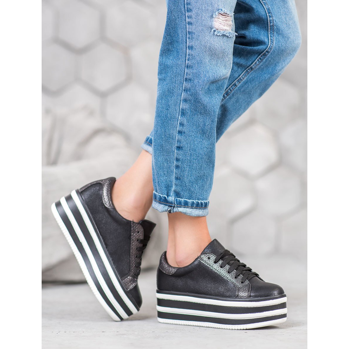 Realizate din materiale de înaltă calitate, inclusiv imitație de piele și textile, acestea oferă nu doar un aspect estetic, ci și durabilitate. Platforma înaltă de 6 cm asigură stabilitate și confort, ceea ce le face o alegere ideală pentru plimbări lungi sau întâlniri cu prietenii. Datorită tocului moale și încorporat, adidașii țin bine piciorul, minimizând riscul de abraziune.