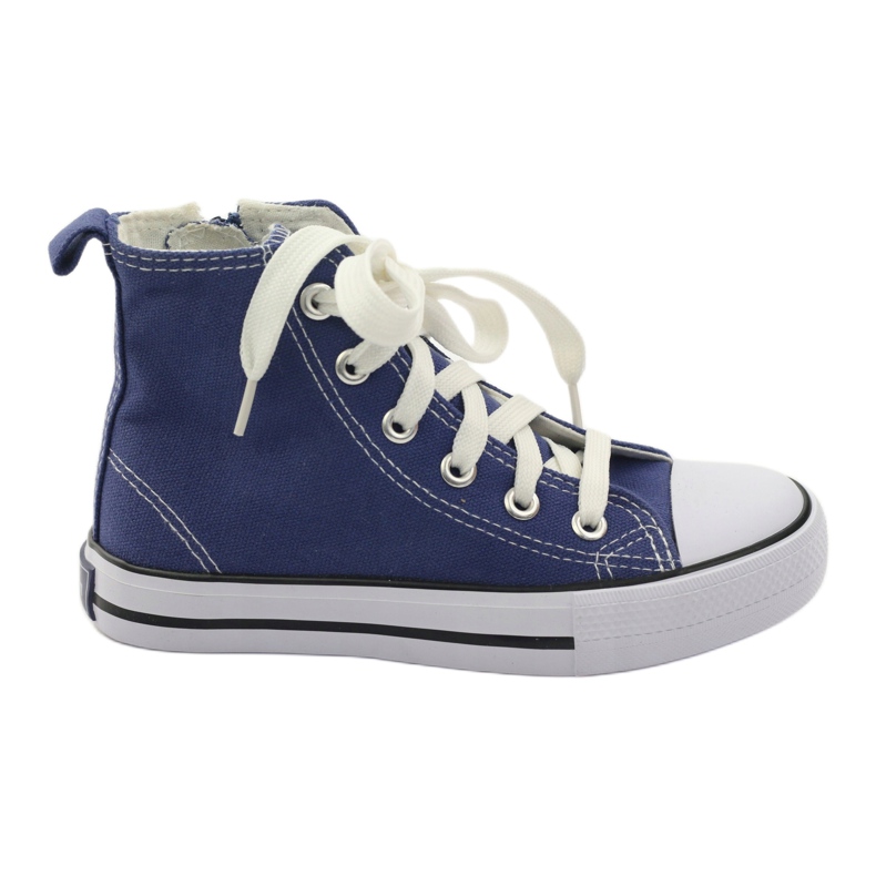 Aceștia sunt adidași pentru copii American Club care încântă atât prin stil, cât și prin calitatea manoperei. Acest model bleumarin deschis cu accente albe este o alegere excelenta pentru copiii activi. Încălțămintea este confecționată din material textil de înaltă calitate, care asigură durabilitate și respirabilitate adecvată. Interiorul pantofului este căptușit cu material textil moale, care garantează confortul la purtare pe tot parcursul zilei.