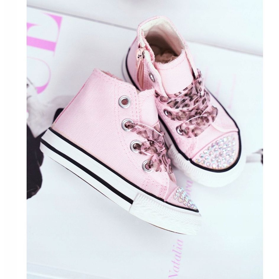 Modelul este decorat cu strasuri elegante și imprimeu leopard și panglici netede, permițându-vă să creați stiluri unice care vor încânta pe toată lumea. Datorită închiderii cu șireturi și a contracarcului suplimentar pentru călcâi, adidașii se potrivesc perfect piciorului, oferind suport deplin.