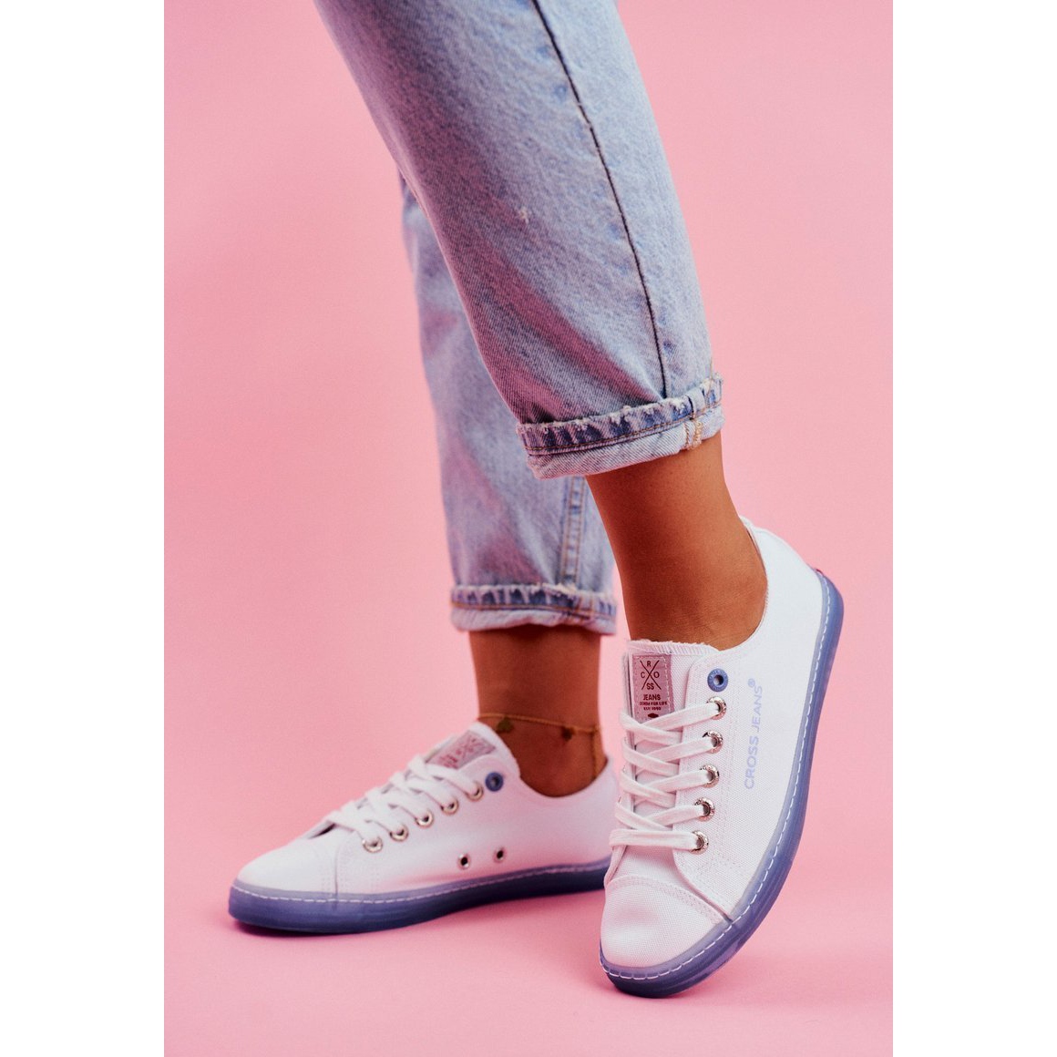 Detalii: Adidași pentru femei Cross Jeans White Blue FF2R4077C alb albastru
