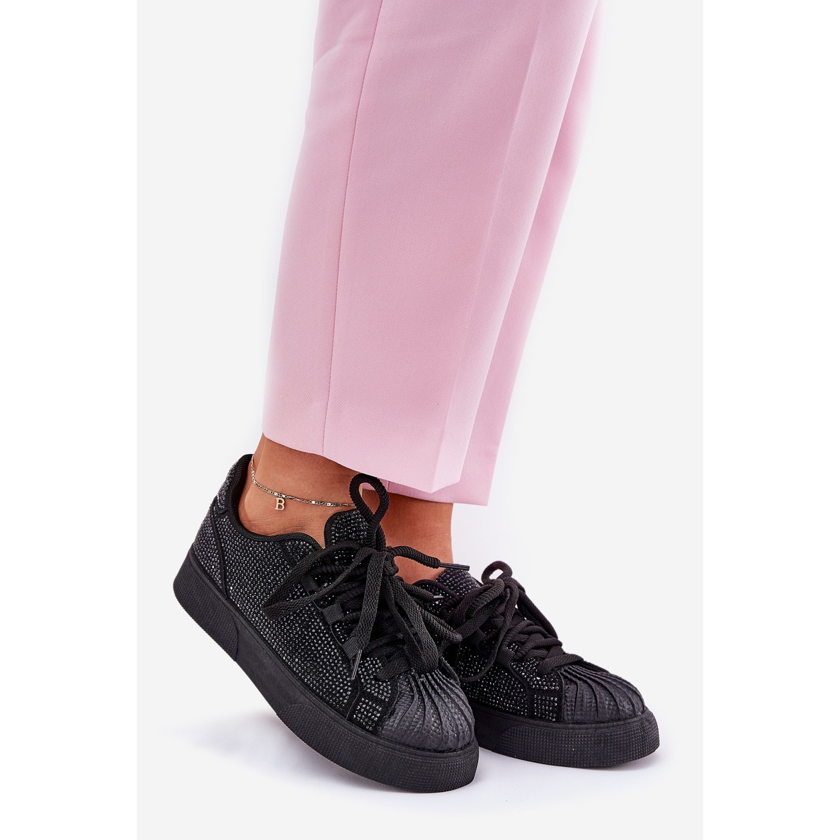 Detalii: Adidași pentru femei cu decorare pe platformă neagră negru