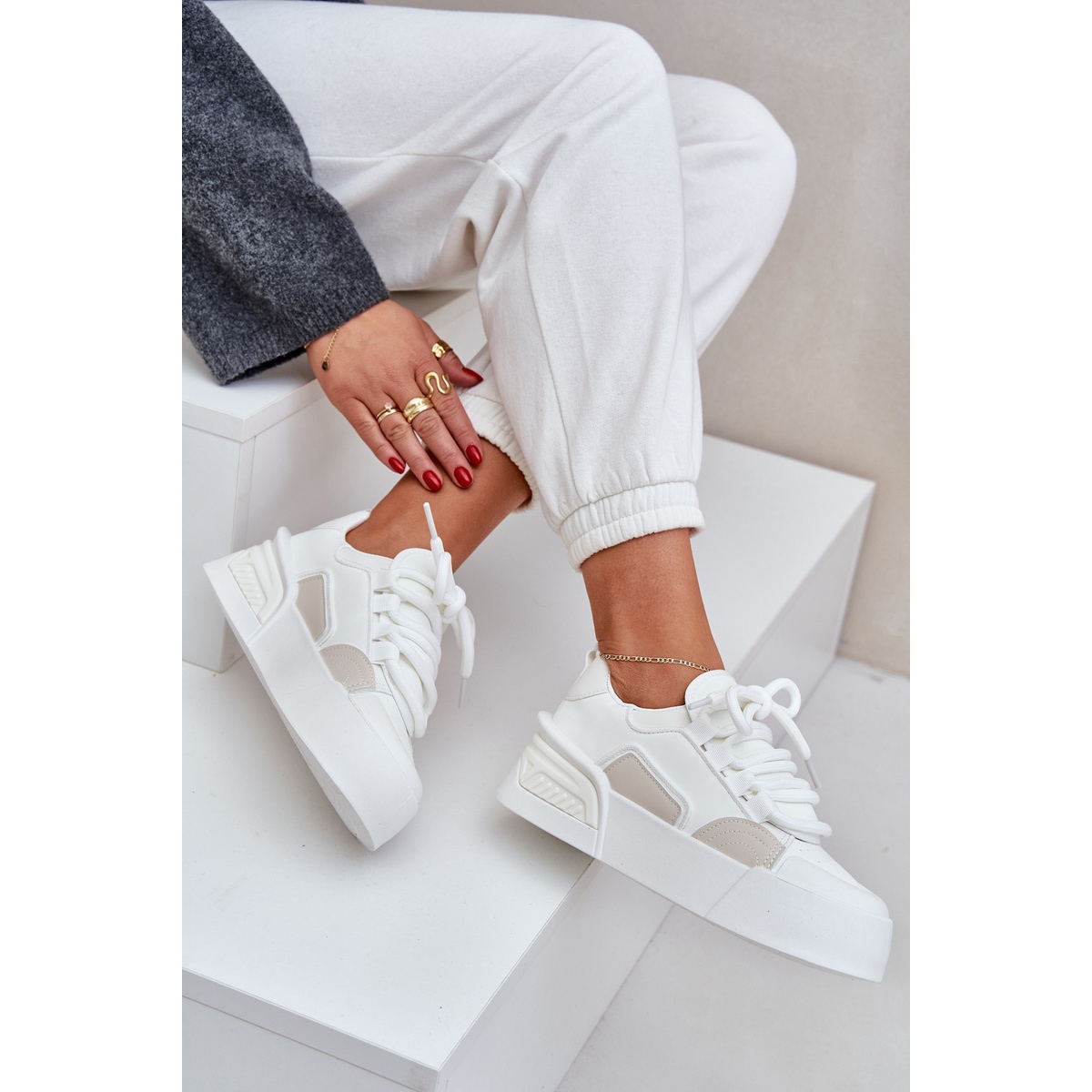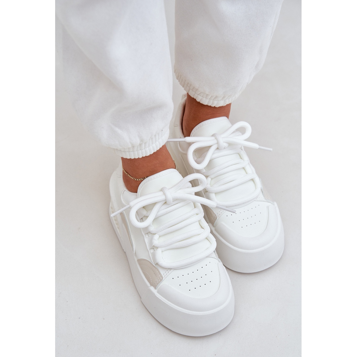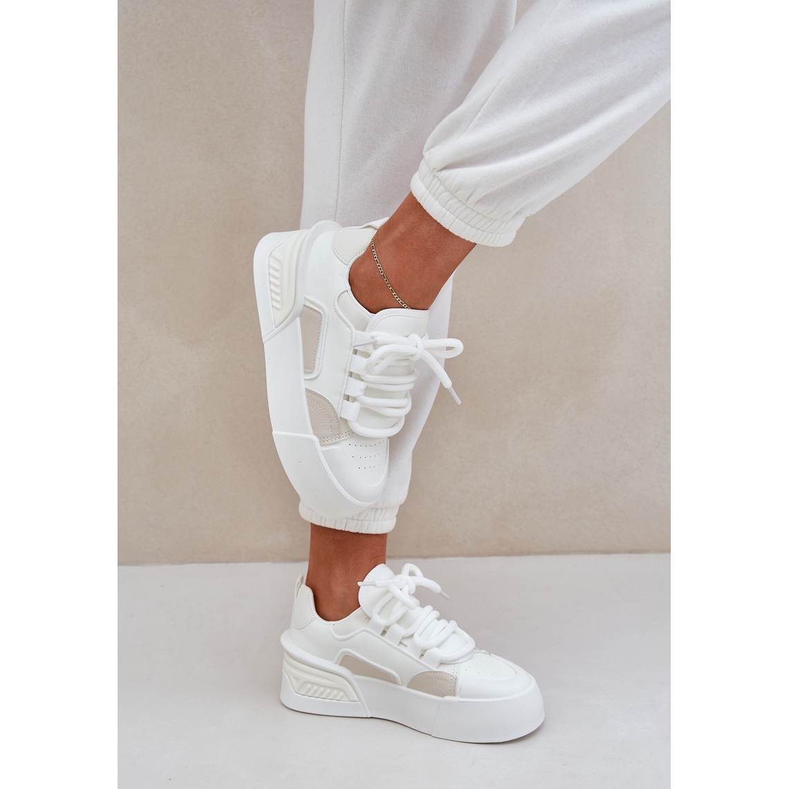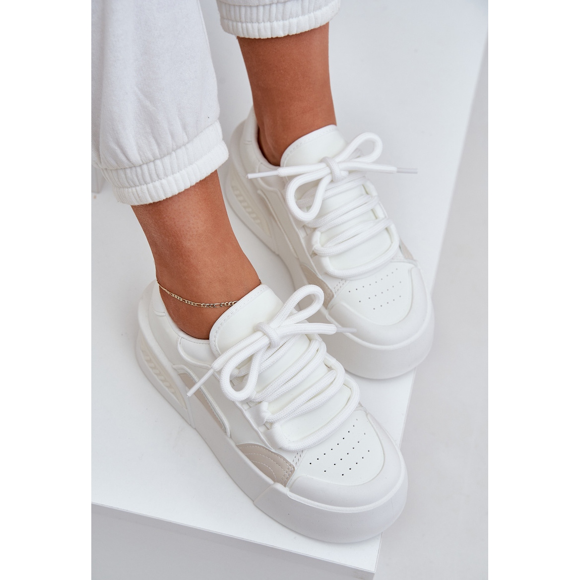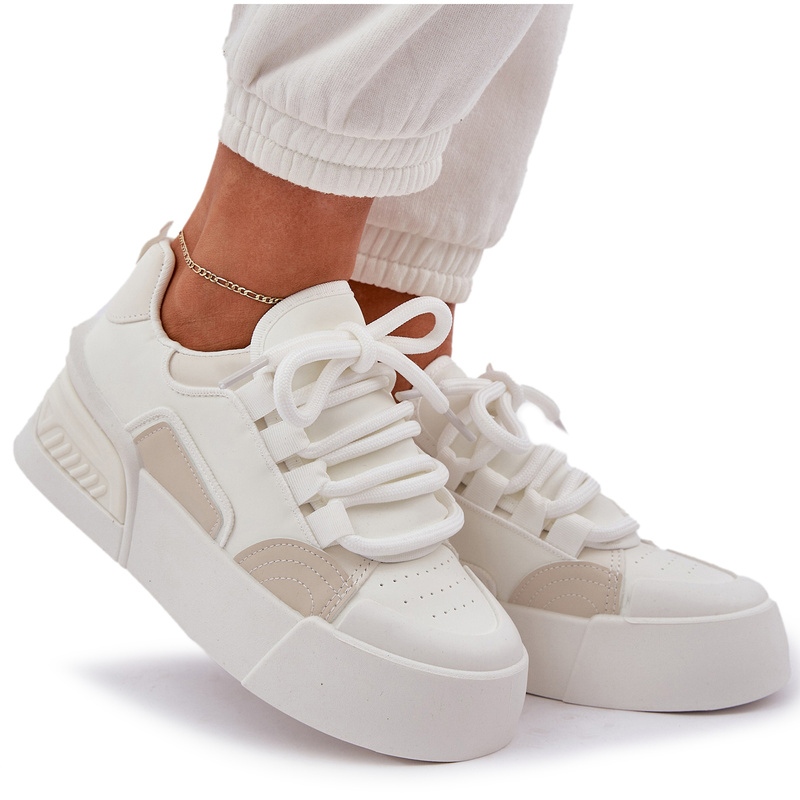 Detalii: Adidași pentru femei cu șireturi groase pe platforma albă