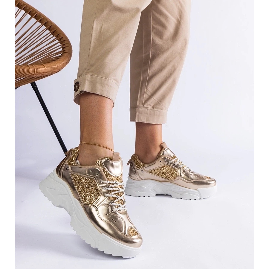 Detalii: D/CEO Adidași pentru femei de aur cu inserții de sclipici caraballo