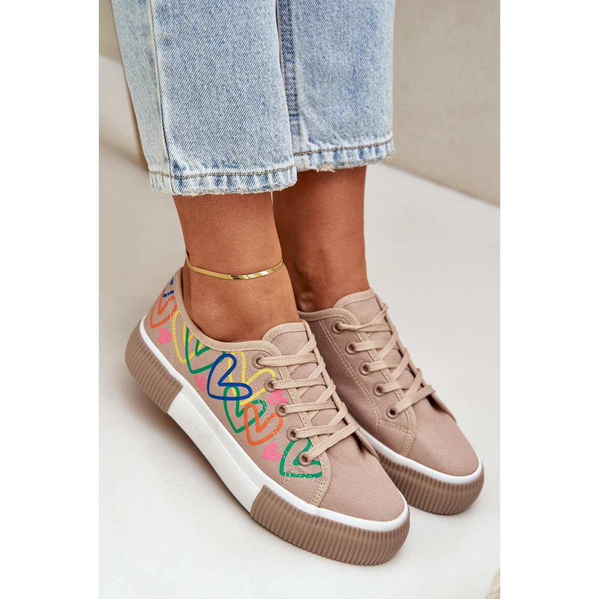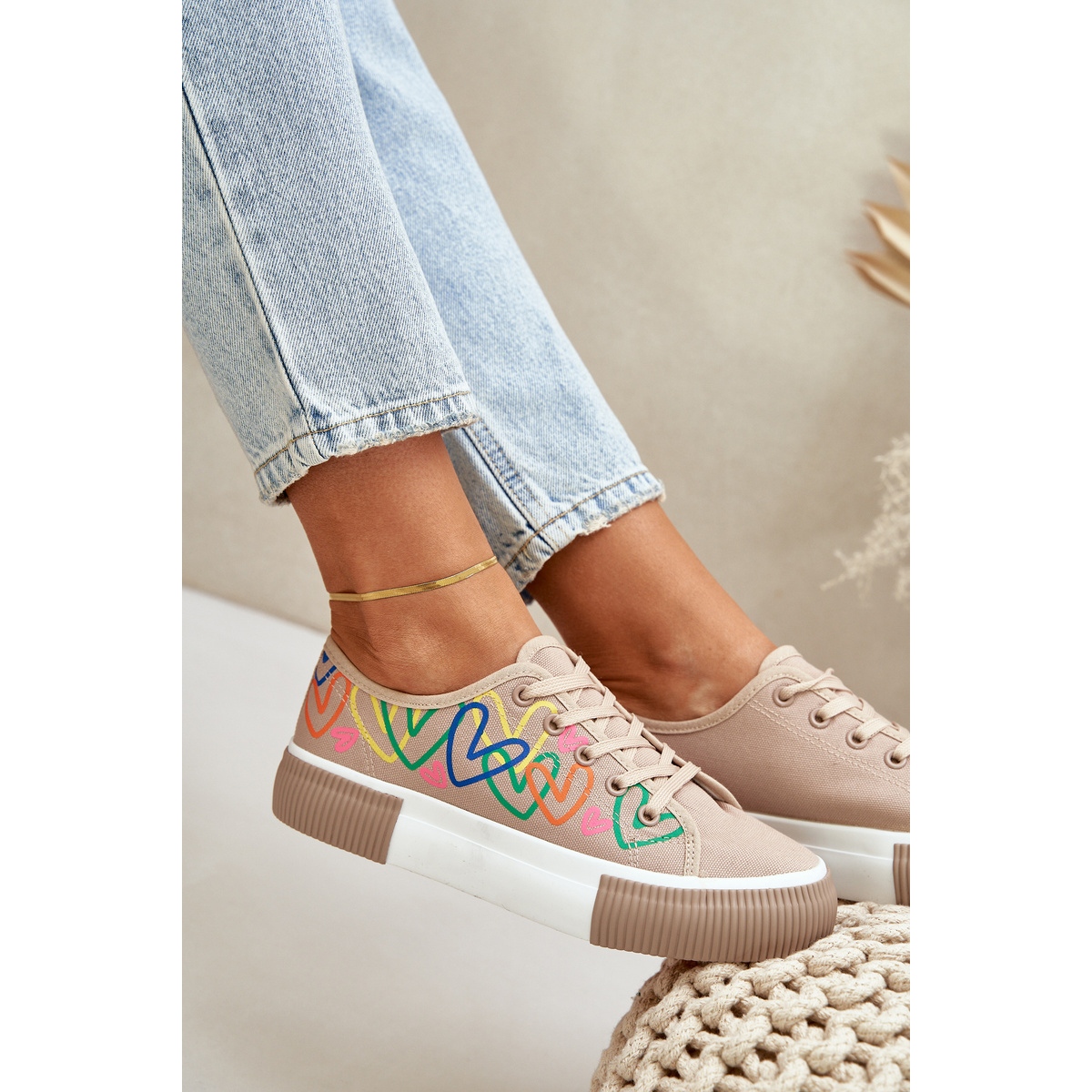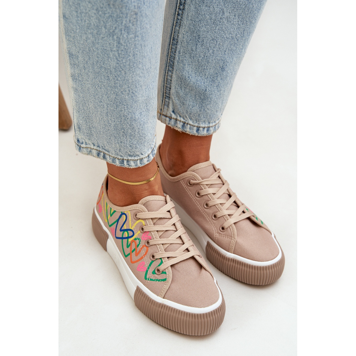 Detalii: Adidași pentru femei în inimi cu dimensiuni întunecate bej