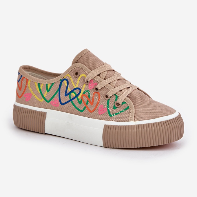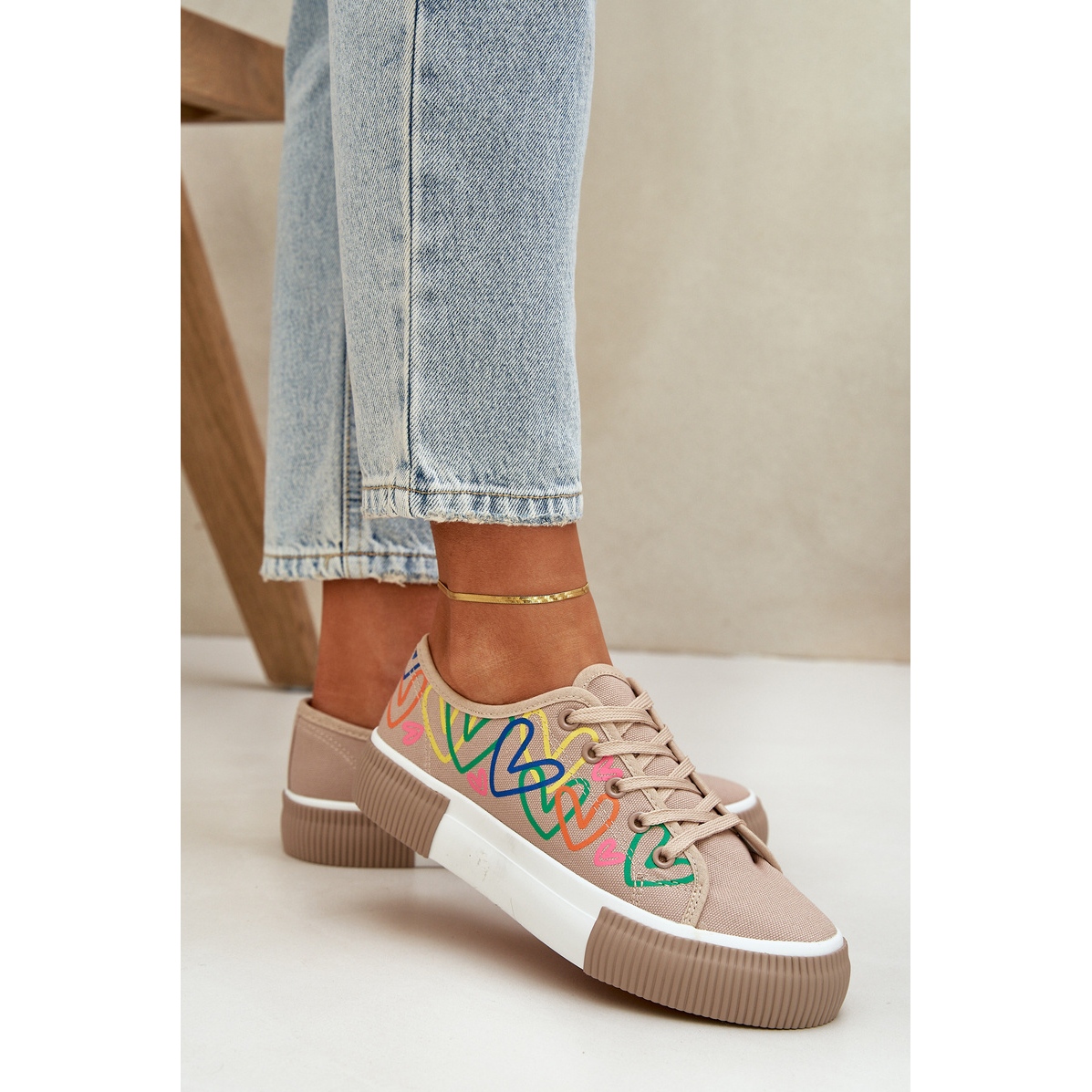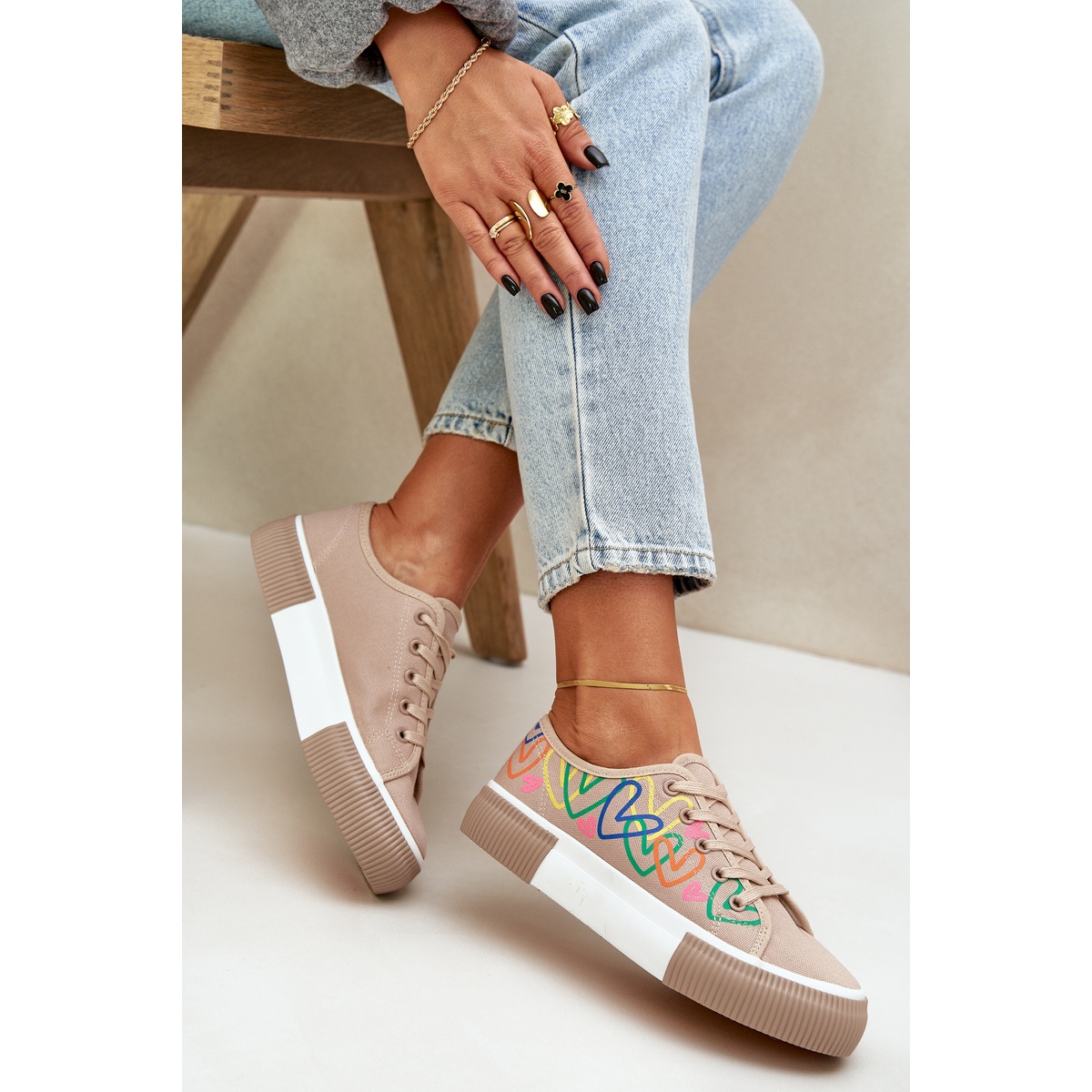 Detalii: Adidași pentru femei în inimi cu dimensiuni întunecate bej