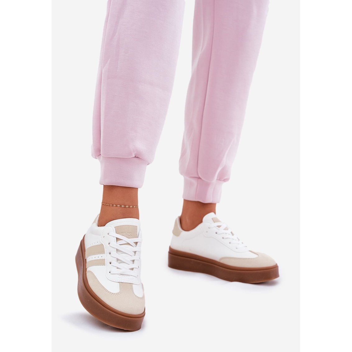 Detalii: Adidași pentru femei pe platformă cu bej din piele eco și alb