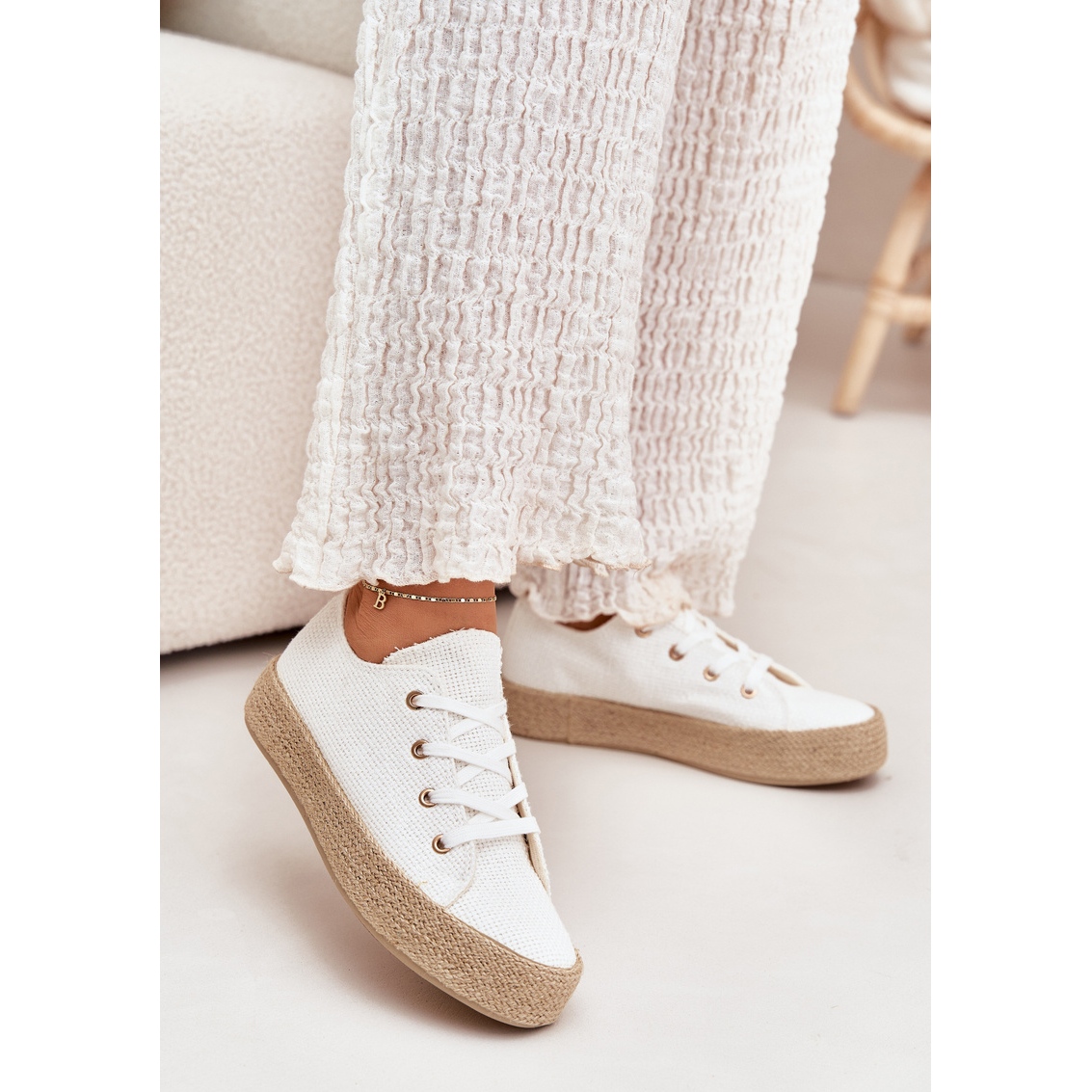 Detalii: Adidași pentru femei pe platformă cu împletitură albă