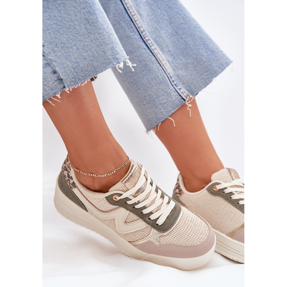 Adidașii pentru femei de pe platforma bej este combinația perfectă de confort și stil la modă. Fabricate din piele ecologică și materiale textile, acești pantofi sport oferă un confort maxim în timpul activităților zilnice. Setați pe o platformă înaltă de 3,5 cm, ei ridică subtil figura, adăugând ușurință la fiecare pas.