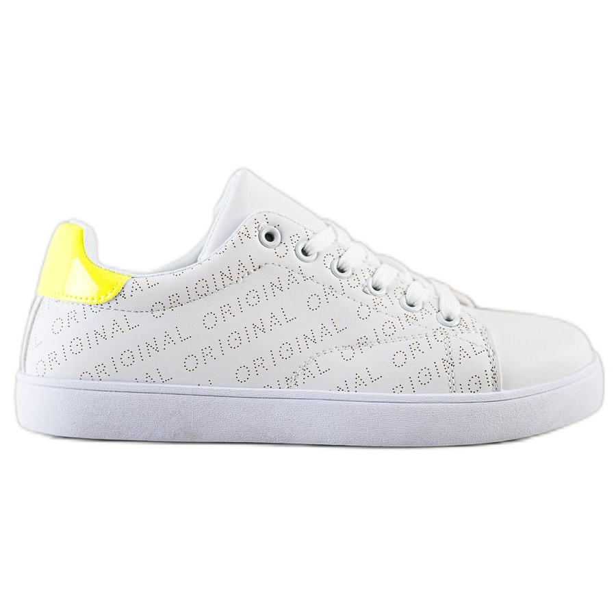 Realizati cu atentie la detalii, acesti pantofi atrag atentia prin aspectul lor rafinat. Partea superioară din material care imita pielea nu numai că arată elegantă, dar este și ușor de curățat. Culorile albe adaugă o eleganță casual, în timp ce imprimarea originală cu inscripții pe laterale subliniază caracterul mărcii SHELOVET. Inserția galbenă de pe călcâi este un accent specific, de designer.