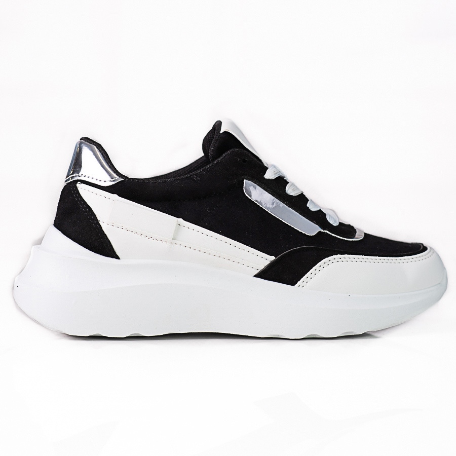 Adidașii sport de damă Shelovet sunt o alegere unică pentru fiecare femeie care prețuiește combinația de stil și confort. Acești pantofi cu șireturi, confecționați elegant, într-o culoare universală - negru cu accente albe - sunt o completare perfectă a garderobei tale de zi cu zi indiferent de anotimp, pentru că se potrivesc atât perioadei toamnă-iarnă, cât și primăvară-vară.