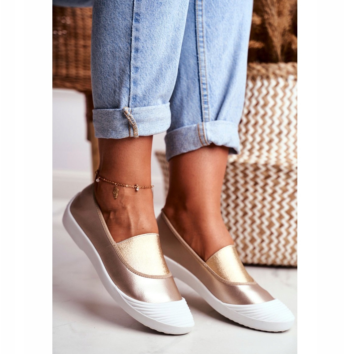 Descoperiți stil și confort extraordinar cu pantofii sport Slip On Justy de la renumitul brand LU BOO! Acești pantofi sport eleganti, aurii, sunt un must-have în garderoba oricărei femei. Perfecte pentru zilele de vară pentru că îmbină confortul cu un aspect rafinat. Se alunecă cu ușurință și se îmbracă și se scot rapid, făcându-le o alegere excelentă pentru femeile care duc un stil de viață activ.