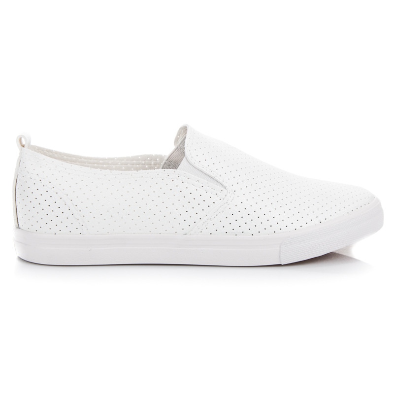 Va prezentam pantofi sport Slip On Ajurati intr-o culoare alba eleganta - alegerea perfecta pentru femeile active care apreciaza atat confortul cat si aspectul la moda. Acești adidași low-top sunt confecționați din piele ecologică de înaltă calitate, ceea ce îi face prietenoși cu mediul și în același timp extrem de stilați.
