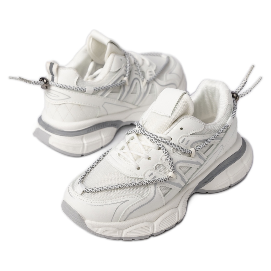 Descoperiți noua dimensiune a confortului și stilului cu adidași sportivi pentru femei White/Grey! Acești pantofi din dantelă sunt o alegere excelentă pentru femeile active care doresc să combine funcționalitatea cu un aspect la modă. Talpa unică, masivă, cu o înălțime de 5 cm, adaugă nu numai stilul, ci și ușurința la fiecare pas, ceea ce le face perfecte pentru activitățile de zi cu zi.