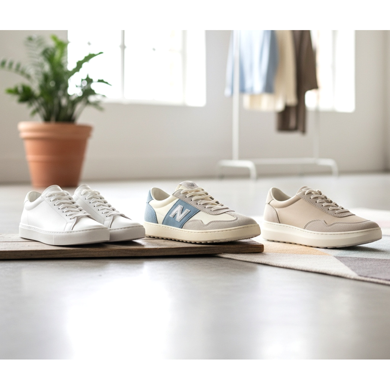 Al doilea tip este adidașii retro slim: modele cu profil redus care se referă la anii 70 și 80 cu o dungă subtilă sau un logo minimalist. Acest stil va funcționa bine atât în ținutele de zi cu zi, casual, cât și în combinație cu articole de garderobă mai elegante. Versiunile în culori pastelate - crem, gri, bej - sunt deosebit de populare în primăvara și vara anului 2026.